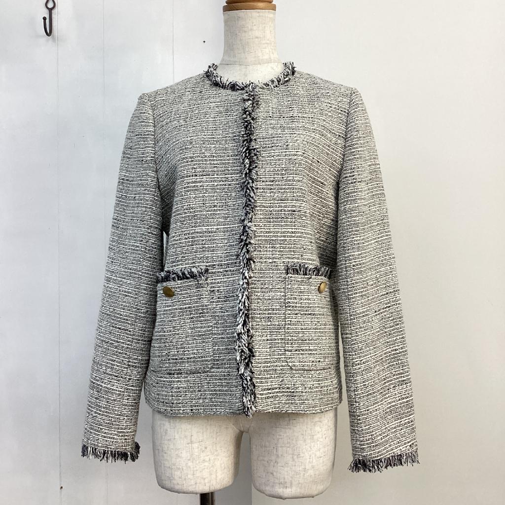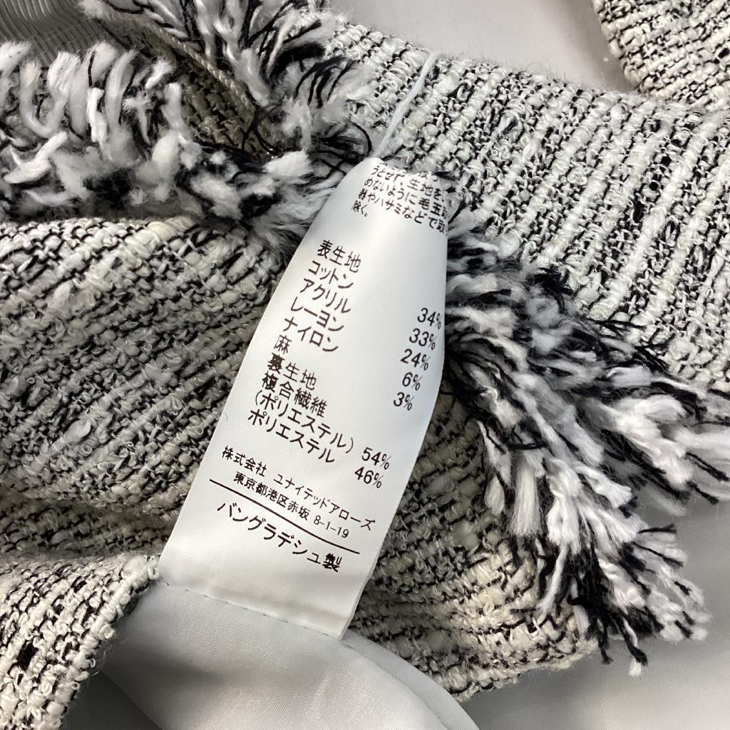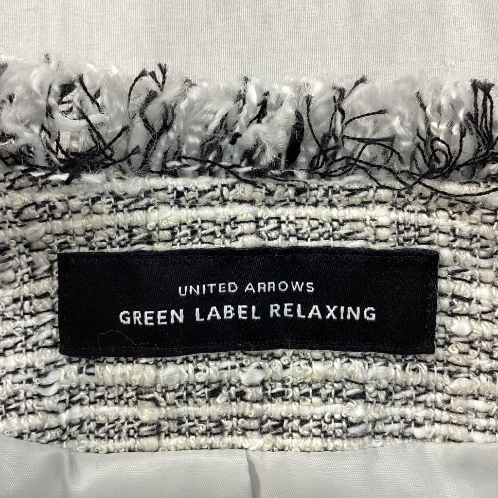 | コメント | 【GreenLabel Relaxing】 【定価:¥19800】 【サイズ】38 【実寸(㎝)】B92 袖丈56.5 肩幅36 丈51.5 【素材(%)】※タグ参照 【裏地(%)】あり 【色】ホワイト系 【デザイン】ツィードジャケット 襟ぐり・袖口フリンジ ポケットあり(フリンジあり) 裏地あり 【フォーマル】 【状態】使用感あり(小) |