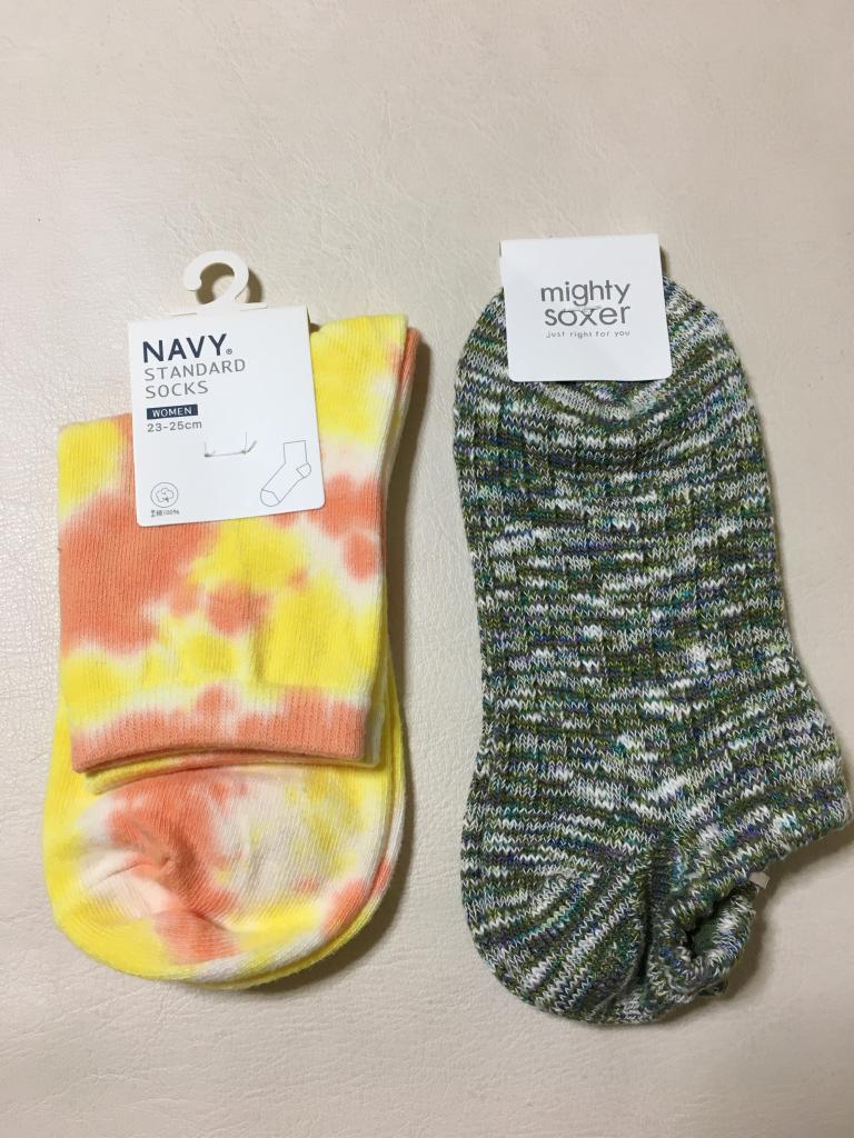 | コメント | ソックス2点 ①NAVY 表示サイズ:23-25cm オレンジ系 ②mighty soxer 表示サイズ:22-24cm 定価3足1000円(税別) グリーン系 |