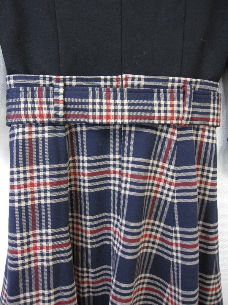 | コメント | 「チェックドッキングワンピース」 【サイズ表記】0 【材質】写真参照 【実寸サイズ】バスト79肩幅35.5袖丈42着丈86ウエスト64ヒップ95 【デザイン】黒×ネイビー、ベージュ、赤のチェック柄 7分袖 裏地あり 付属ベルトあり 後ファスナー・カギホック 【状態】裏地前中央下に生地難あり 毛羽立ち少々、着用感中くらい 定価25,000円(税抜) |