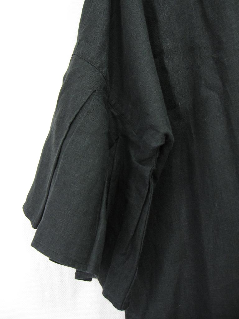 | コメント | 【材質】麻100 【実寸サイズ】バスト134着丈95.5総丈98ゆき丈64 【デザイン】ブラック 袖フリルリネンワンピース 色褪せ加工 前ボタン 両サイドポケット 【状態】ネップ、白線あり 色あせ大、着用感・毛羽立ち中くらい |