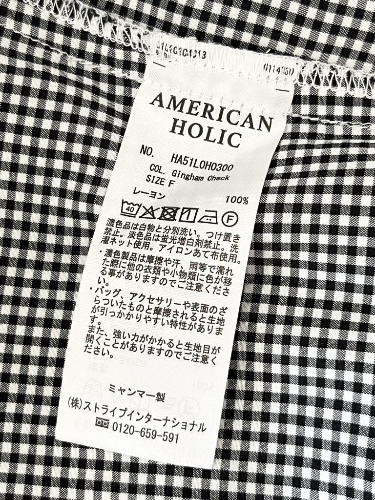 | コメント | アメリカンホリック 2025年製 ギンガムチェックシャツワンピース