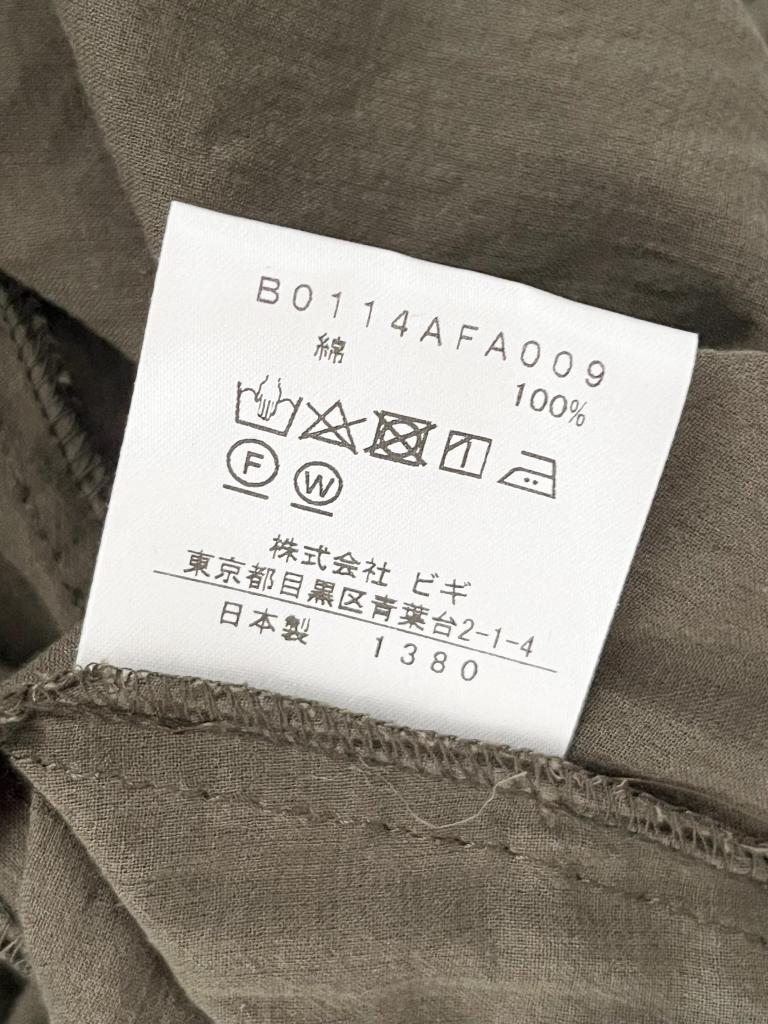 【記載サイズ】表記なし(実寸をご参照ください) 【実寸】バスト144 着丈117 ゆき丈75 【色】カーキ 【詳細】綿100%、ほんの少々透け感あり 【状態】少々毛羽立ちあり ※おうちで洗える◎ ご不明な点や気になる点などございましたら、お気軽にご質問ください♪ |