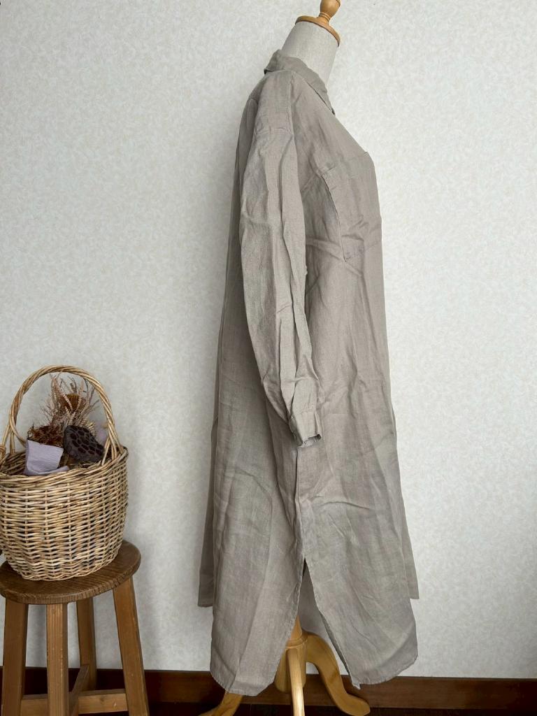 | コメント | 【実寸約cm】B145 着丈109.5 肩幅55 袖丈47.5 【サイズ】F 【素材%】麻100% 【色】ブラウン 【アイテム】長袖ワンピース 【ポケット】あり 【ボタン】あり 【状態・シミやホツレ等】なし 【着用感】少 【備考】 |
