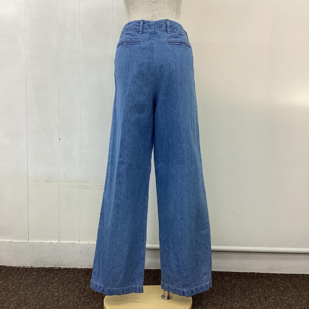 | コメント | 【サイズ】Sサイズ相当 【実寸(㎝)】W70 H100 丈103.5 股上29 股下72.5 【素材(%)】※タグ参照 【裏地(%)】なし 【色】ブルー系 【デザイン】サイズ表記:1 デニム 前ボタン ポケットあり 後ろポケット 【状態】使用感あり(中) 毛羽立ちあり(中) |