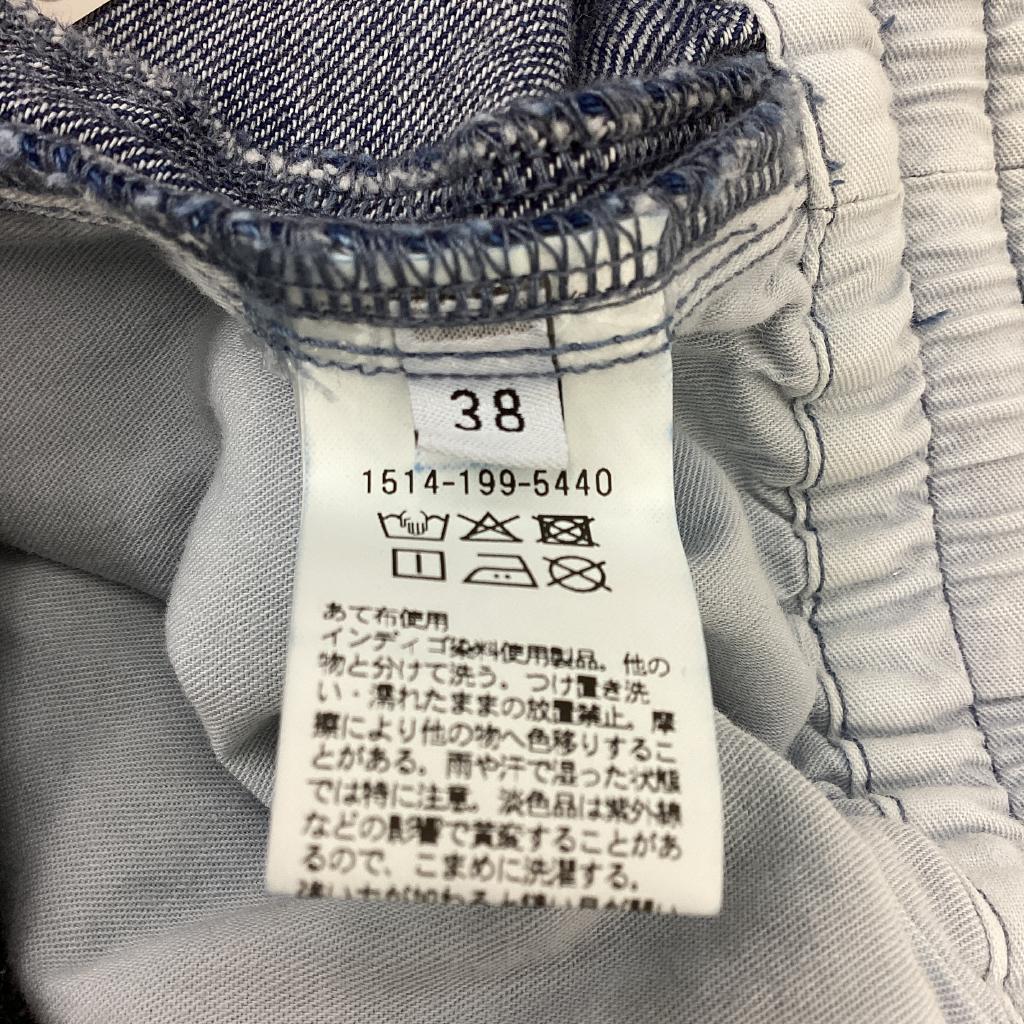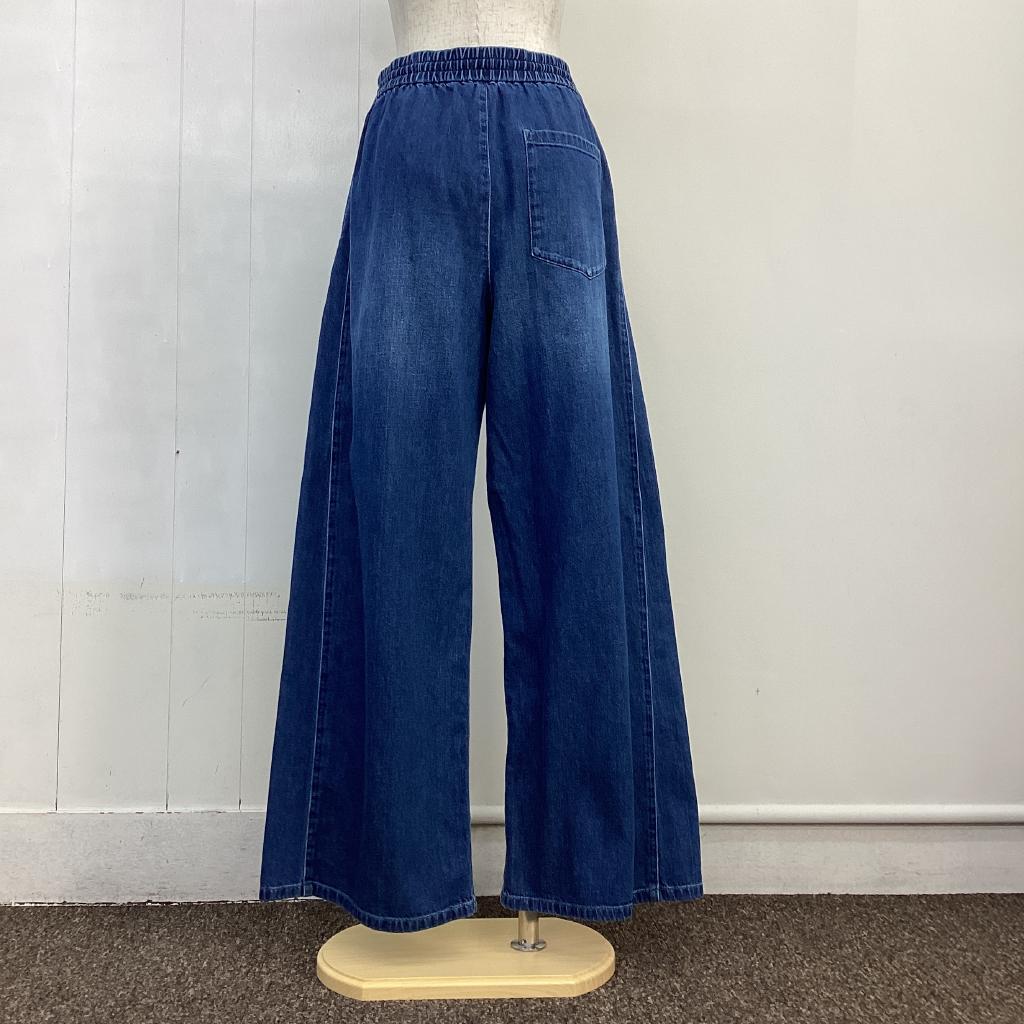 | コメント | 【定価:¥21800】 【サイズ】38 【実寸(㎝)】W65 H106 丈103 股上31 股下70.5 【素材(%)】※タグ参照 【裏地(%)】なし 【色】ブルー系 【デザイン】ウエストゴム(調節ひもあり) 右後ろポケット デニム 【状態】新品タグ付き |