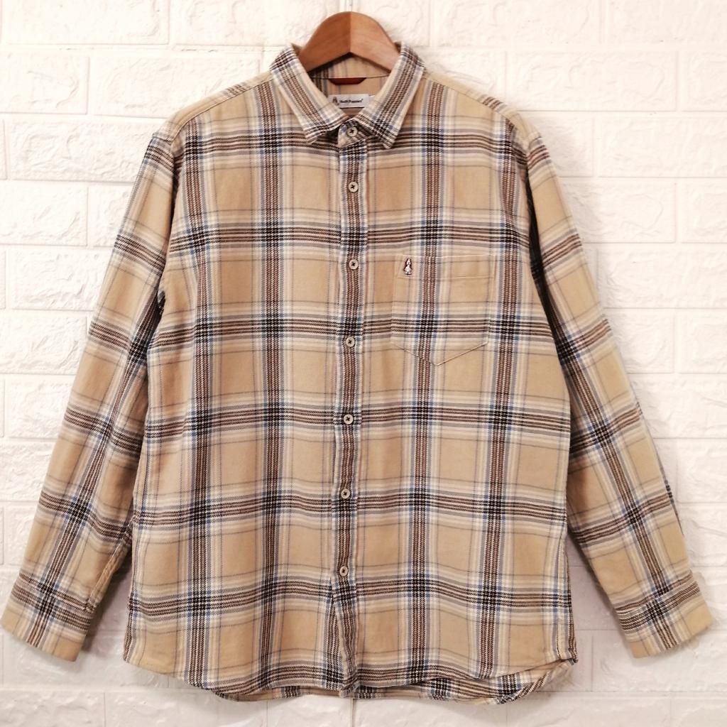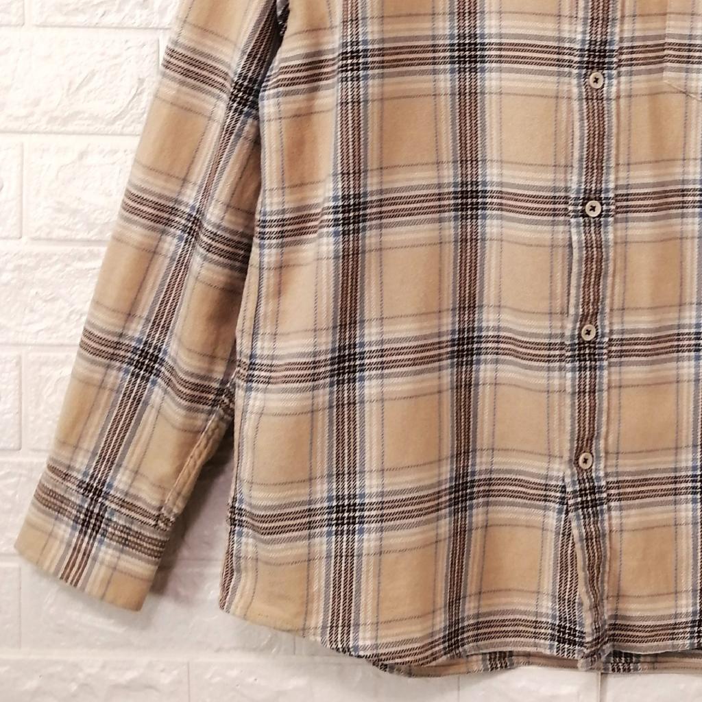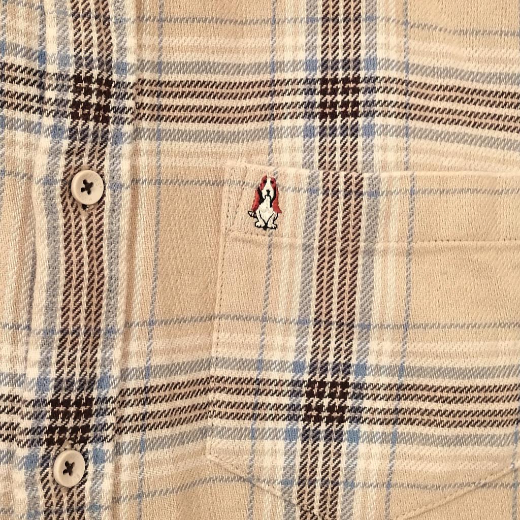 | コメント | 【ハッシュパピーズ】 『メンズチェックシャツ』 ◆[サイズ]=メンズL ◆[実寸(平置きcm)]=身幅58 肩幅45 袖丈60 着丈73 ◆[色]=ベージュ×ブラウン他 ◆[デザイン]=フロント開閉ボタン ポケット口キャラ刺繍 ◆[状態]=着用感多少 ◆[材質]=7枚目画像参照 |