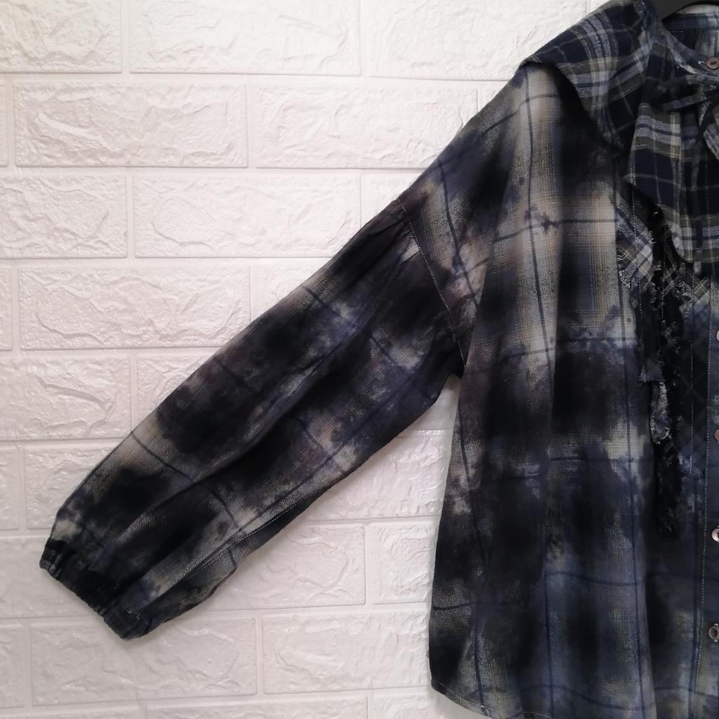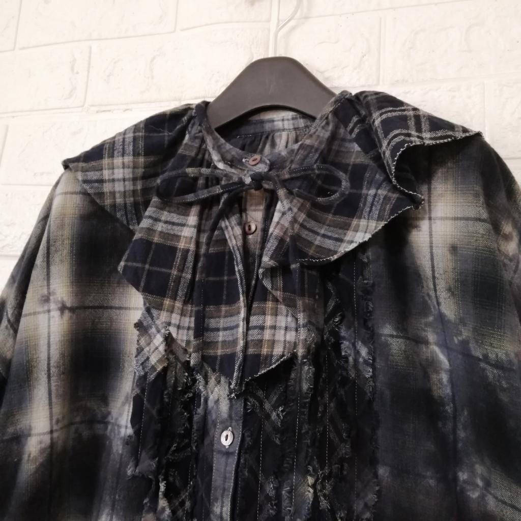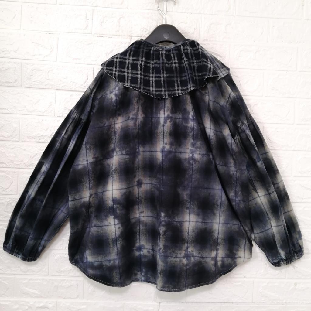 | コメント | 【キューブシュガー トビラ】 『フリル襟付きチェック柄 ネル地ブラウス』 ◆[サイズ]=M ◆[実寸(平置きcm)]=身幅66 裄丈75 着丈65 ◆[色]=ネイビー×ブルー他 ◆[デザイン]=フロント開閉ボタン バンドカラー つけ衿付き 胸元ピンタックフリル パーツカットオフ加工 袖口ゴム タイダイ染チェック柄 ◆[状態]=性質上毛羽立ちあり 着用感少々ありますが、比較的綺麗なお品です 参考価格11,000円(税込み)のお品です ◆[材質]=9枚目画像参照 |