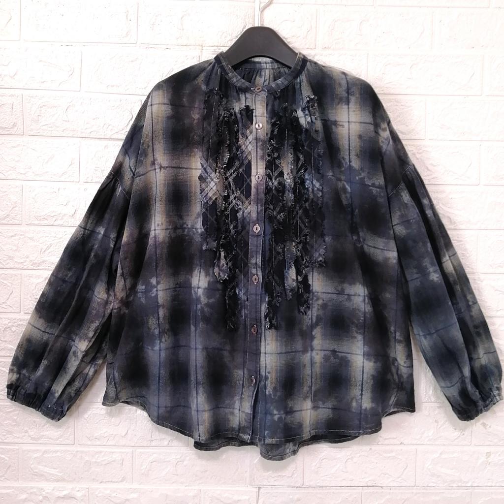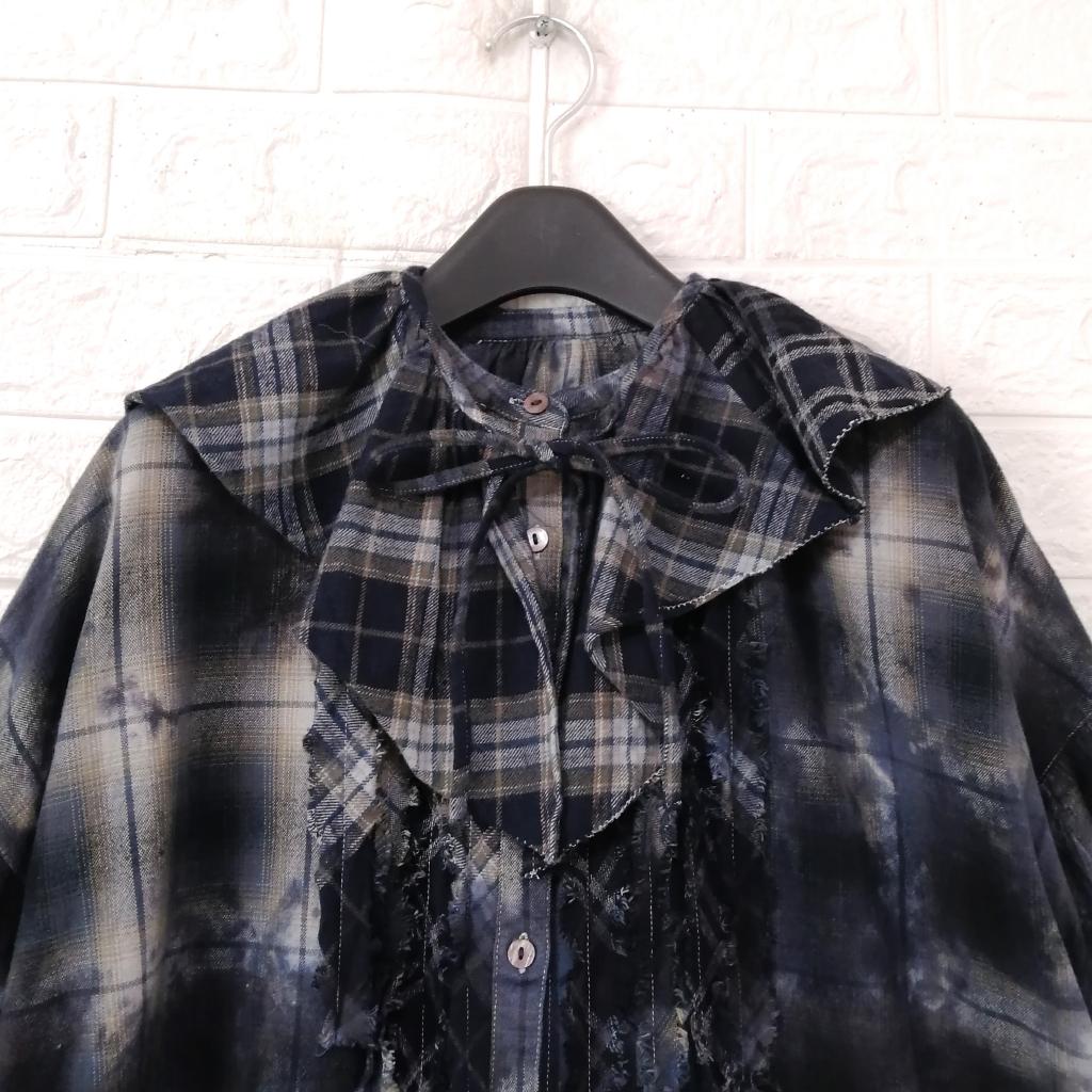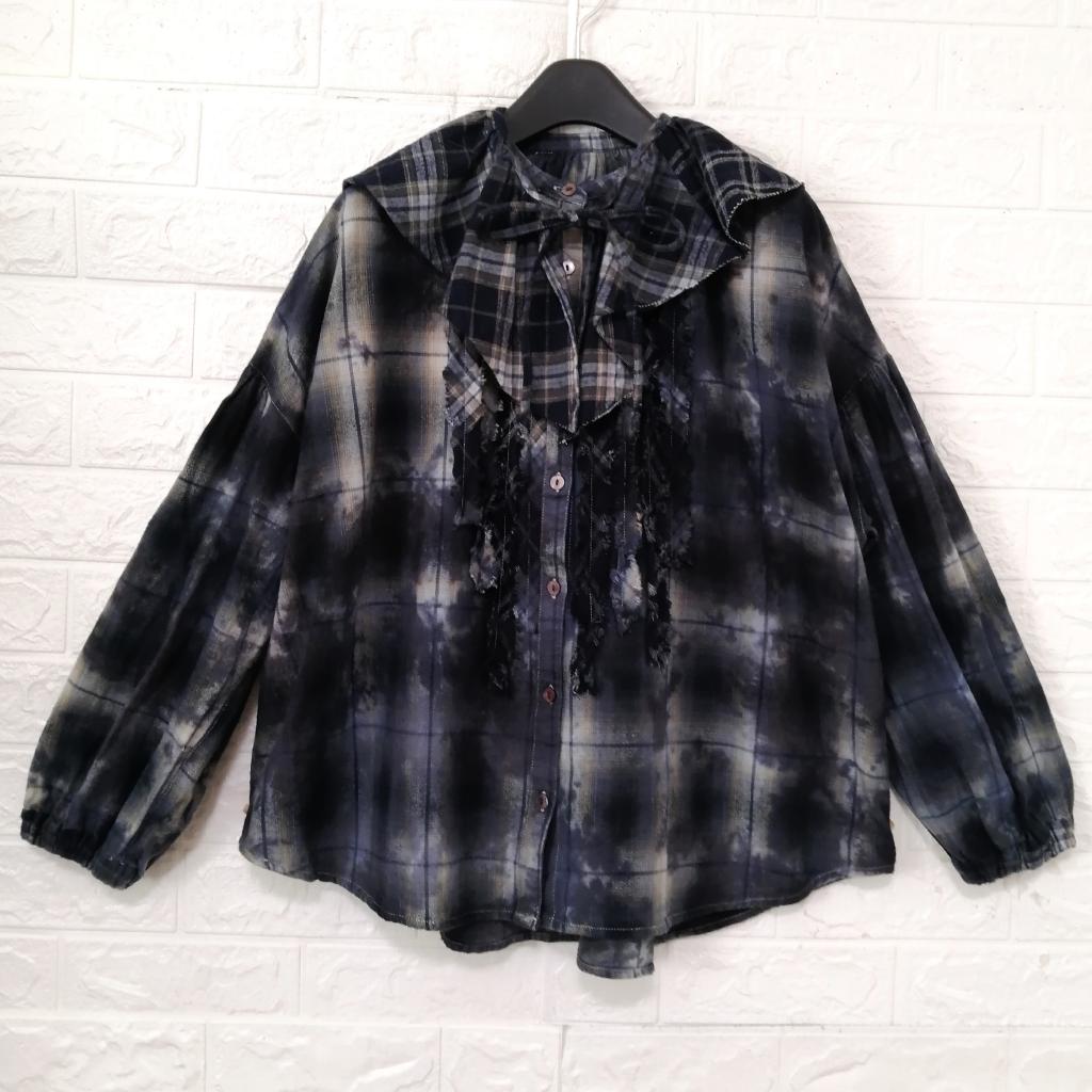 | コメント | 【キューブシュガー トビラ】 『フリル襟付きチェック柄 ネル地ブラウス』 ◆[サイズ]=M ◆[実寸(平置きcm)]=身幅66 裄丈75 着丈65 ◆[色]=ネイビー×ブルー他 ◆[デザイン]=フロント開閉ボタン バンドカラー つけ衿付き 胸元ピンタックフリル パーツカットオフ加工 袖口ゴム タイダイ染チェック柄 ◆[状態]=性質上毛羽立ちあり 着用感少々ありますが、比較的綺麗なお品です 参考価格11,000円(税込み)のお品です ◆[材質]=9枚目画像参照 |