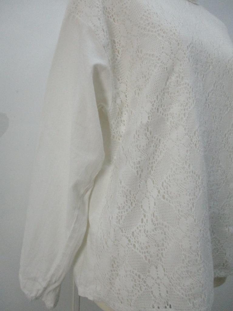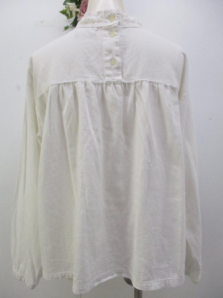 | コメント | 【クリックポスト発送可250円】 ★スタンドカラーレースデザイン♪ 【材質】綿100%/前身頃レースポリエステル76%綿24%/裏地、棉100% 【実寸サイズ】B112㎝ 着丈64㎝ 肩幅48㎝ 袖丈50㎝ 【生地説明】綿地 【色・柄】ホワイト 【デザイン特徴】前、レース 後ろボタン止め3か所 肩下部、切り替え&ギャザー入り。袖口平ゴム絞り。 【商品状態】特になし。 |