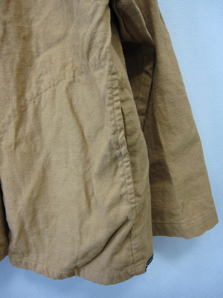 | コメント | 「起毛ドロストネックブラウス」 【材質】写真参照 【実寸サイズ】バスト150ゆき丈76.5着丈61 【デザイン】淡いキャメル コットンリネン 衿ぐりゴム入り 「31564125」とセットアップ可 日本製 色褪せ加工 前・袖口ボタン 両サイドポケット 【状態】元々の色あせ感がどこまでか不明です 着用感・色あせ少々 定価28,600円(税込) 2024年製 |