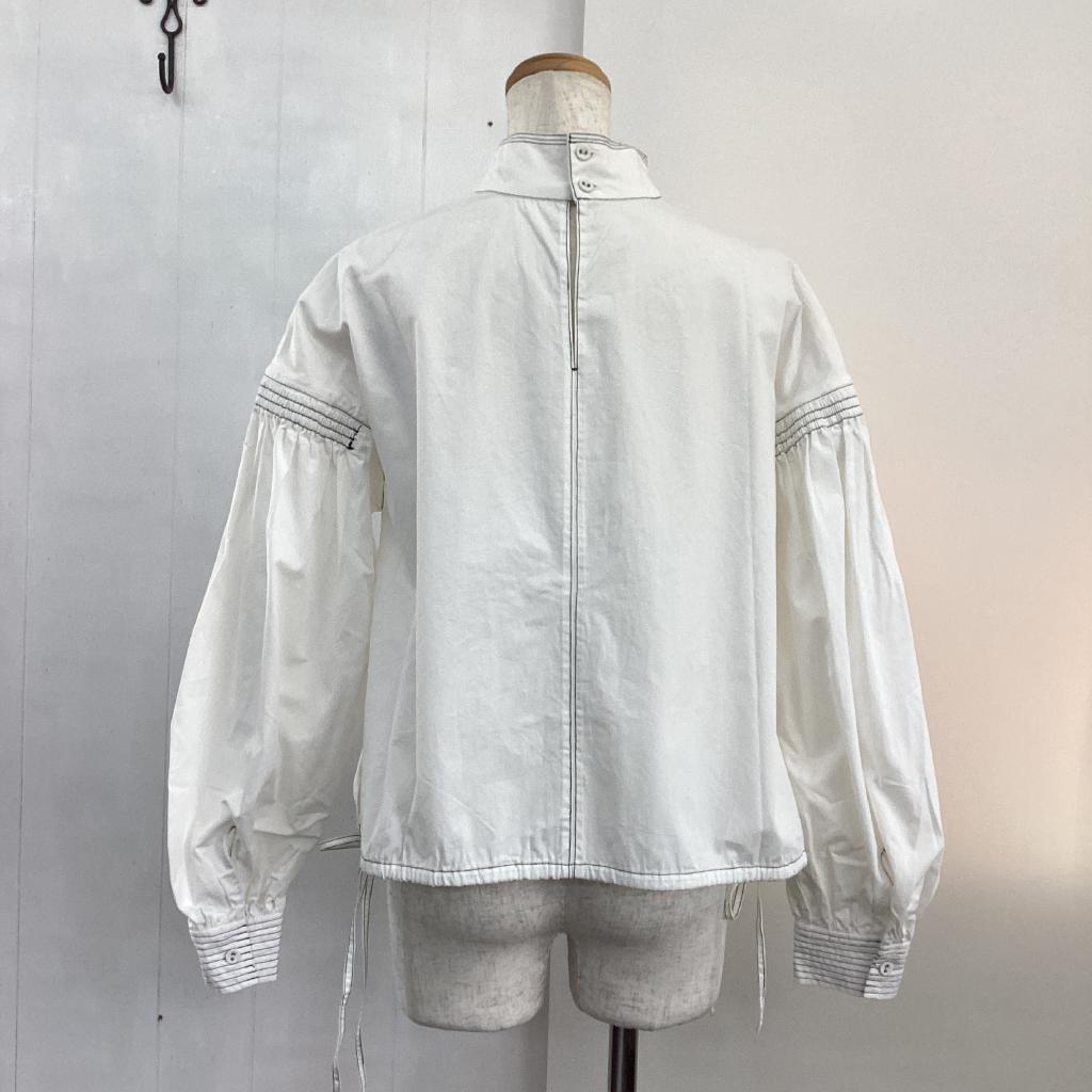 | コメント | 【サイズ】F(フリー) 【実寸(㎝)】B102 袖丈57.5 肩幅41 丈49 【素材(%)】※タグ参照 【裏地(%)】なし 【色】ホワイト系 【デザイン】後ろボタン 両肩シャーリングゴム 袖口ボタン 裾ひもあり 【状態】使用感あり(中) |