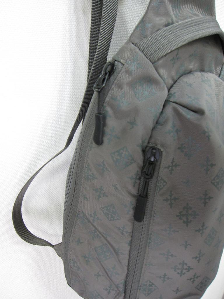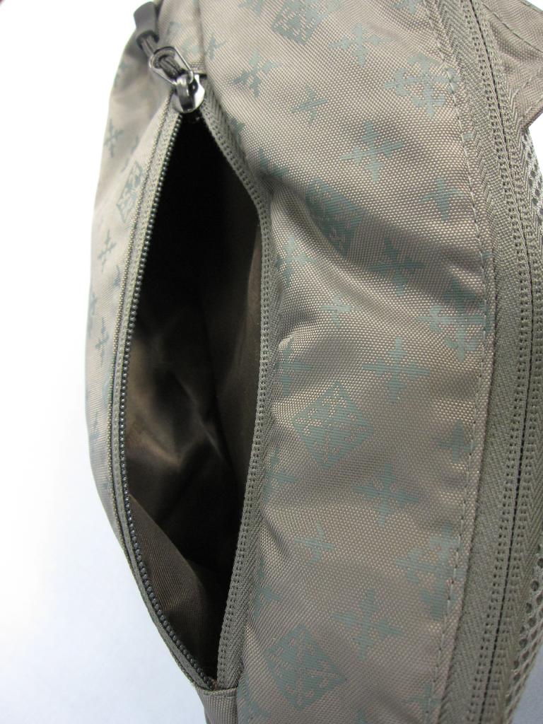 | コメント | 【材質】表示なし 【実寸サイズ】縦35×横23×まち8.5持ち手の長さ無地生地部50+ひも36、調節可 【デザイン】カーキグレー モノグラム 丸型ボディバッグ 本体真ん中に仕切り(?)中綿板あり 外ポケット×2 ファスナー開閉 【状態】背中メッシュに引っかけ少々 使用感ほんの少々 定価12,100円(税込) |