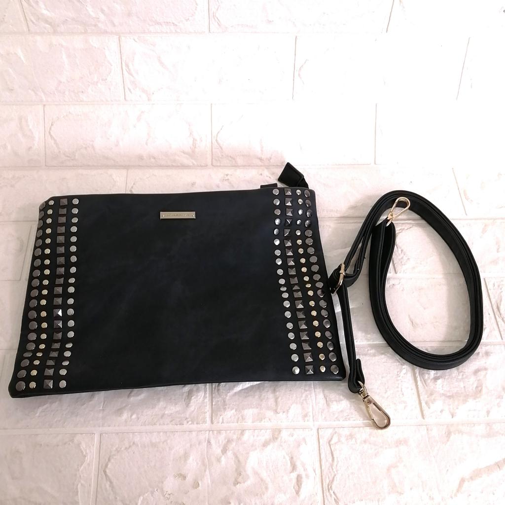 | コメント | 【Seventh heaven】 『スタッズ付きショルダー バッグ』 ◆[実寸(平置きcm)]=縦22 底横30.5 ファスナー開閉口26 ショルダー最大140 ◆[色]=スミクロ ◆[デザイン]=開閉口ファスナー 表面スタッズデザイン ロゴプレート付き 裏面ファスナー付きポケット×1 内側オープンポケット×2 ◆[状態]=使用感多少 ◆[材質]=合皮素材 |