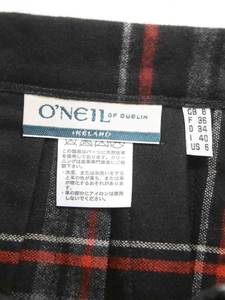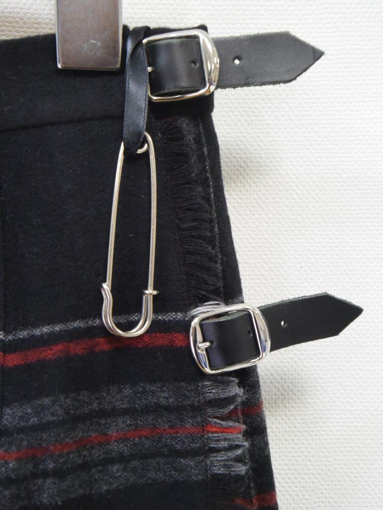 | コメント | 「オニールオブダブリン」 【サイズ表記】GB8/US6 【材質】ポリエステル35毛65、附属:牛革 【実寸サイズ】ウエスト64スカート丈61ヒップ88 【デザイン】黒×赤×グレーのチェック キルトスカート ひざ下丈 留めピン付き ウエストベルト三段階調節 【状態】色あせ・毛羽立ち少々、着用感中くらい 保存上のシワあり |