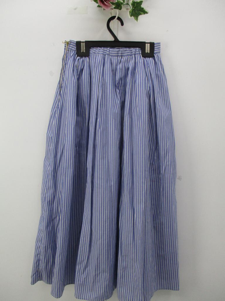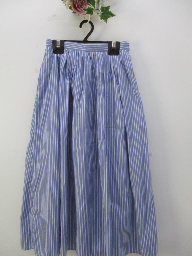 | コメント | ★ストライプスカート♪ 【材質】ポリエステル60% 綿40%/裏地ポリエステル100% 【実寸サイズ】W62㎝~(後ろ平ゴム入り伸びます) スカート丈82㎝ 【生地説明】綿混地 【色・柄】水色×白ストライプ柄 【デザイン特徴】ギャザー入りスカート 左ウエストファスナー開閉 右サイドポケット付き 裏地付き 【商品状態】特になし 【クリックポスト発送不可】 |