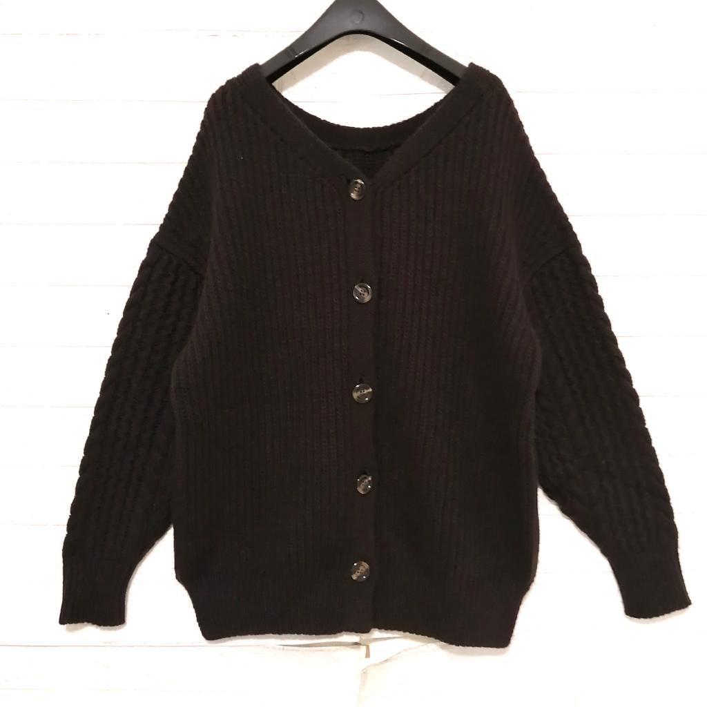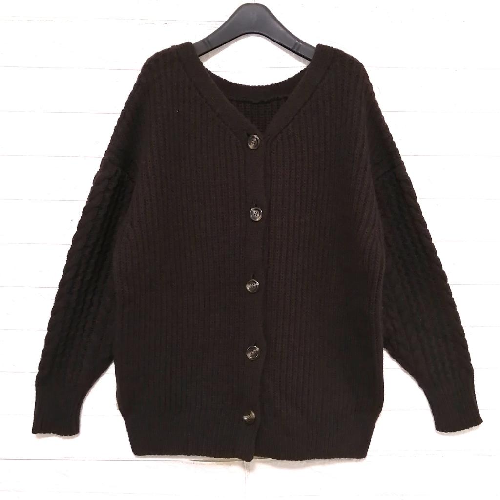 | コメント | 【アンタイトル】 『前後どちらでも着用 カーディガンにもなる2wayニット』 ◆[サイズ]=2(M) ◆[実寸(平置きcm)]=身幅57 裄丈82 着丈66(肩より) ◆[色]=チョコレートブラウン ◆[デザイン]=ボタン開閉 開閉側Vネック メリヤス&ケーブル編み ◆[状態]=性質上毛羽立ちあり 状態良好 ◆[材質]=8枚目画像参照 |