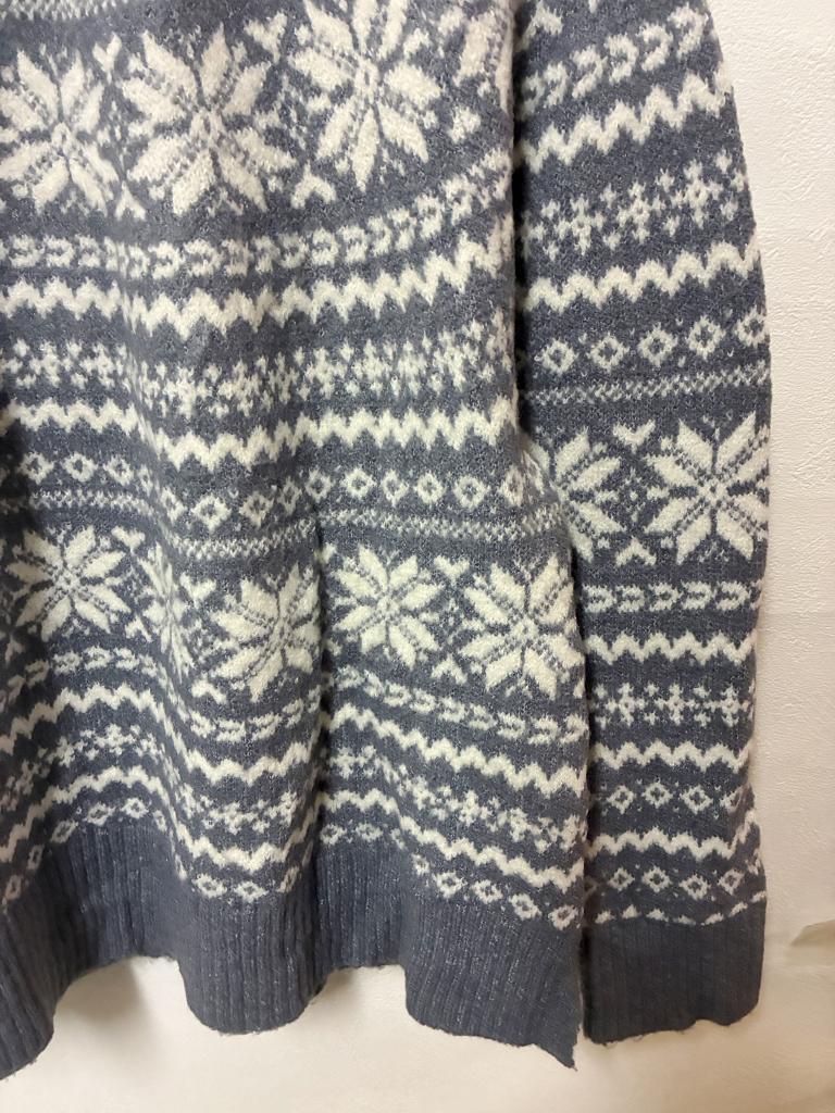 | コメント | 【評価】3 【サイズ】F 【実寸】バスト105 着丈52 ラグラン袖 【材質】アクリル68% ナイロン17% ポリエステル12% ポリウレタン3% 【状態】毛羽立ち・着用感・生地よれ…少々 【色・デザイン】ブルーグレー×ホワイト 両サイドスリット 【風合い】 ◎ 【生地の厚さ】 厚手 【透け感】 なし |