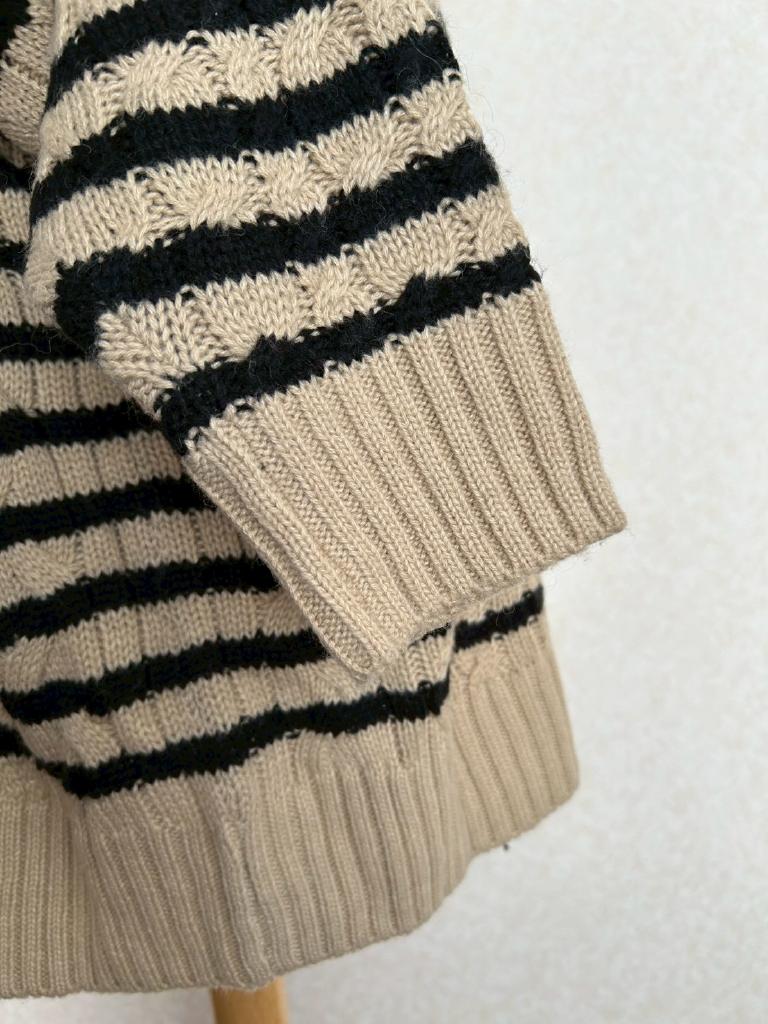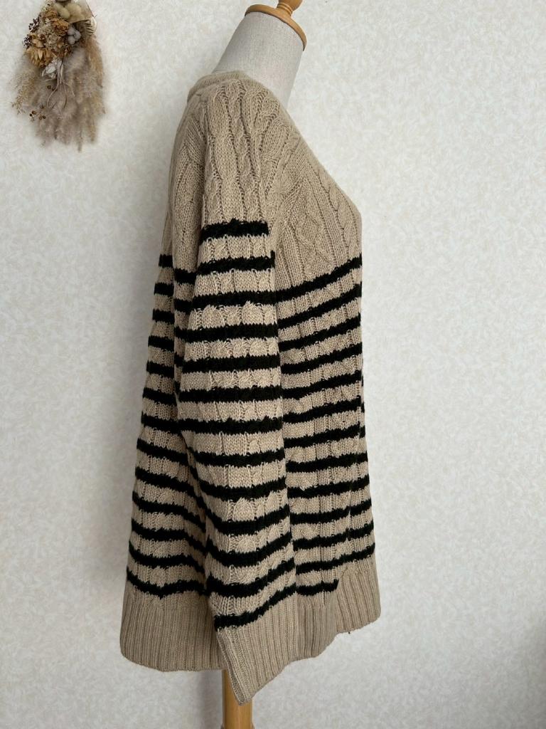 | コメント | 【実寸約cm】B124 着丈60 袖丈68 【サイズ】F 【素材%】アクリル87 毛13 【色】ベージュ ブラック 【アイテム】ニット 【ポケット】なし 【ボタン】なし 【状態・シミやホツレ等】特になし 【着用感】少 【備考】 |