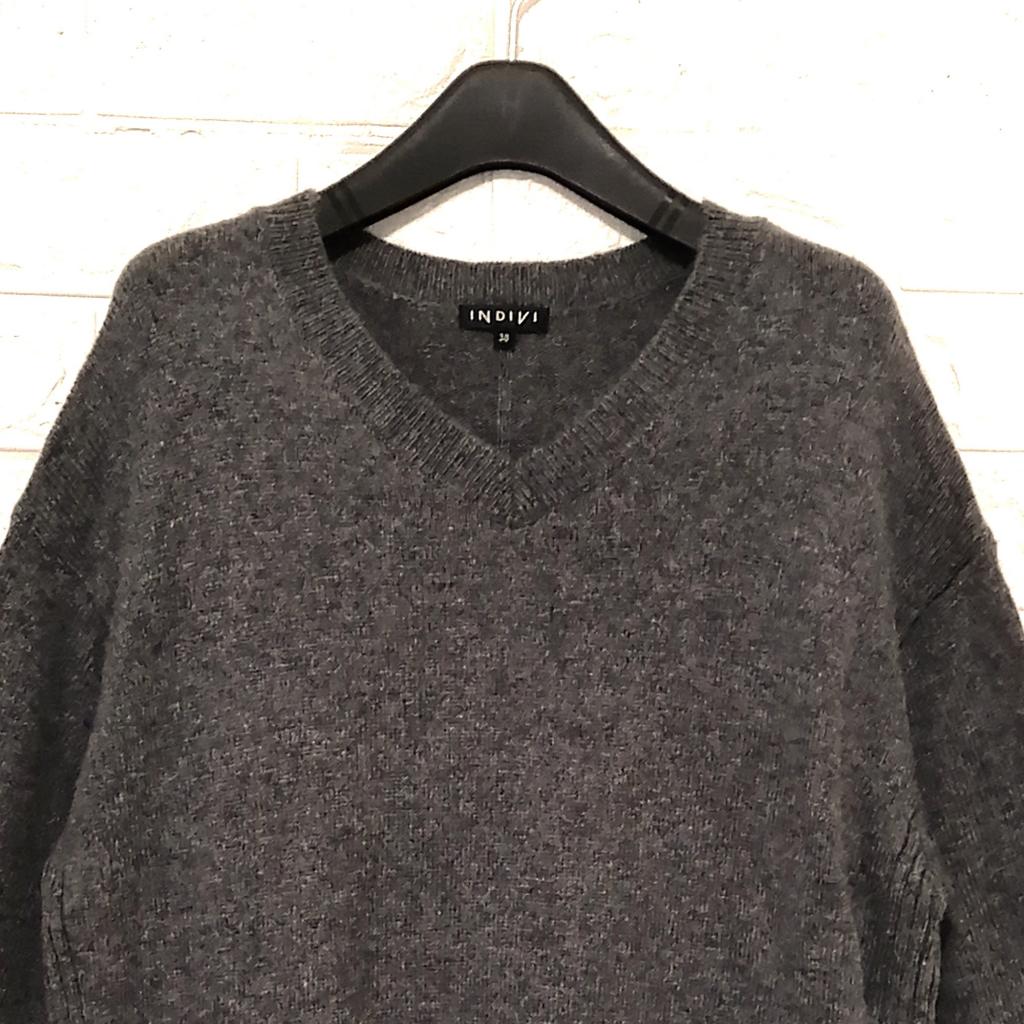 | コメント | 【インディヴィ】 『ウール混ニット チュニック』 ◆[サイズ]=38 ◆[実寸(平置きcm)]=身幅55 裄丈77 総丈67 ◆[色]=グレー ◆[デザイン]=Vネック 両サイド裾スリット入り(16cm) 首元・袖口・裾リブ編み ◆[状態]=性質上毛羽立ちあり 着用感多少あり ◆[材質]=7枚目画像参照 |