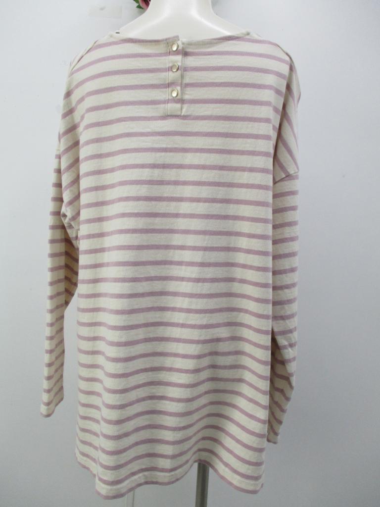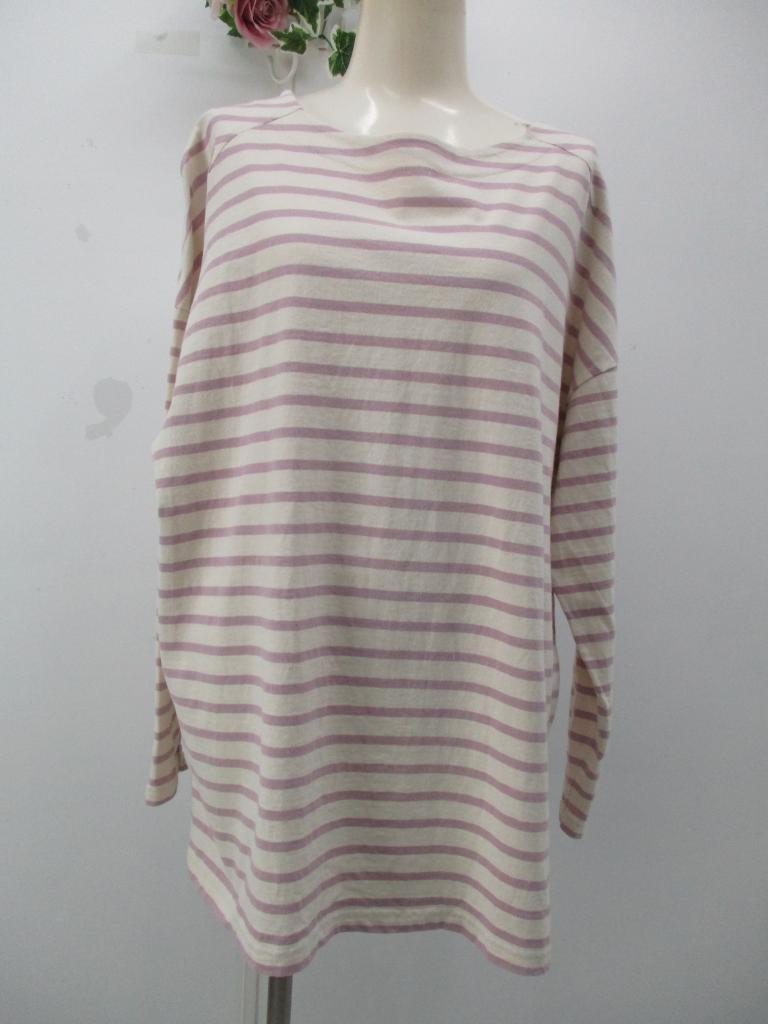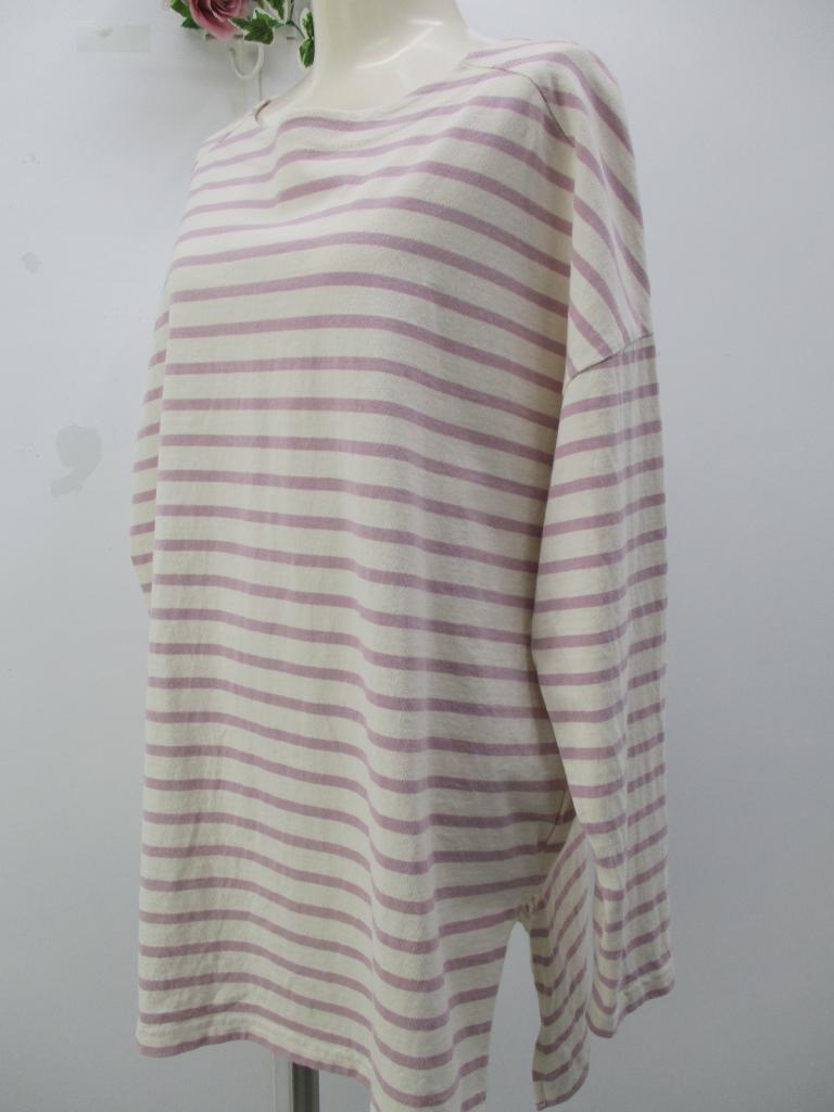 | コメント | ★ボーダー柄♪ 【材質】綿100% 【記載サイズ】F 【実寸サイズ】B112cm着丈68cm 袖丈44㎝ 【生地説明】中厚Tシャツ地 【色・柄】オフホワイト×ラベンダーボーダー入り 【デザイン特徴】シンプルデザイン 【商品状態】特になし |