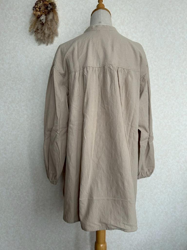 | コメント | 【実寸約cm】B121 着丈75 肩幅52 袖丈50 【サイズ】F 【素材%】綿100% 【色】ベージュ 【アイテム】ボタン並びギャザーチュニック 【ポケット】なし 【ボタン】あり 【状態・シミやホツレ等】なし 【着用感】新品未使用品 【備考】 |