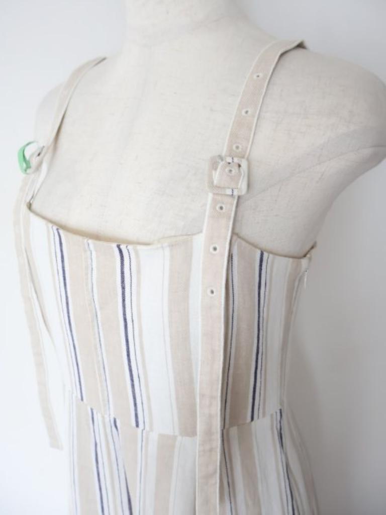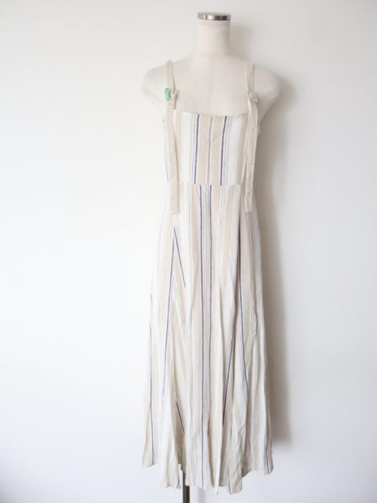 【記載サイズ】2 【実寸】バス80 ウエスト68 着丈105 【色】ライトベージュ オフホワイト ネイビー 【詳細】裏地あり 肩紐長さ調節可 背面ゴム 【状態】ほんの少々引っかけあり おうちで洗える◎ ご不明な点や気になる点などございましたら、お気軽にご質問ください♪ |