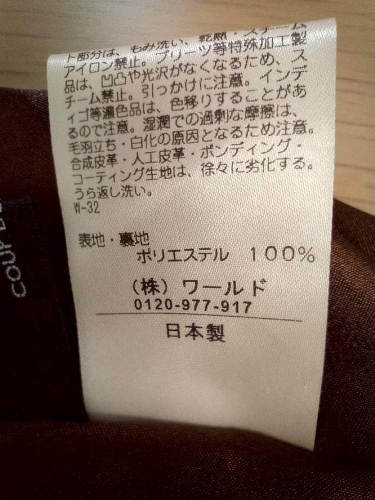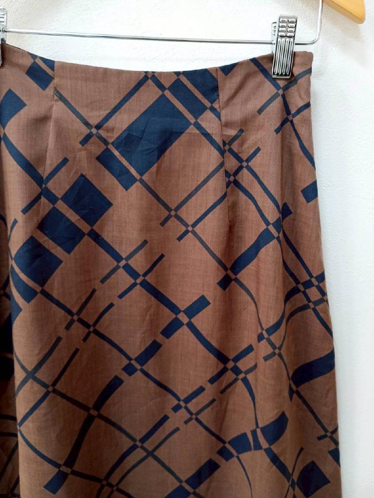 | コメント | クードシャンス 【メーカーサイズ】36 【実寸(cm)】W64~ H84 スカート丈79 【素材】表・裏地:ポリエステル 【デザイン・色】茶 紺 柄 薄手 横ファスナー ウエスト後のみゴム 裏地あり ロングスカート 【状態】ほんの少々毛羽立ち #おすすめ #7223529 |