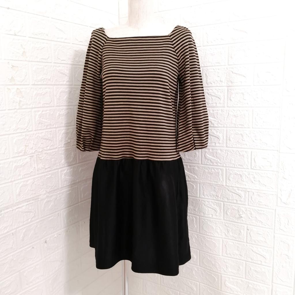 | コメント | 【クチュールブローチ】 『切り替え ワンピース』 ◆[サイズ]=36 ◆[実寸(平置きcm)]=身幅43 裄丈55 着丈85(肩から) ◆[色]=ブラウン×ブラック ◆[デザイン]=切り替えデザイン 上身頃ボーダー柄 スカート部分裏地あり ひざ上丈 7分袖 ◆[状態]=着用感多少 ◆[材質]=7枚目画像参照 |