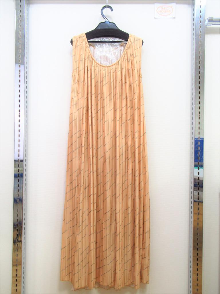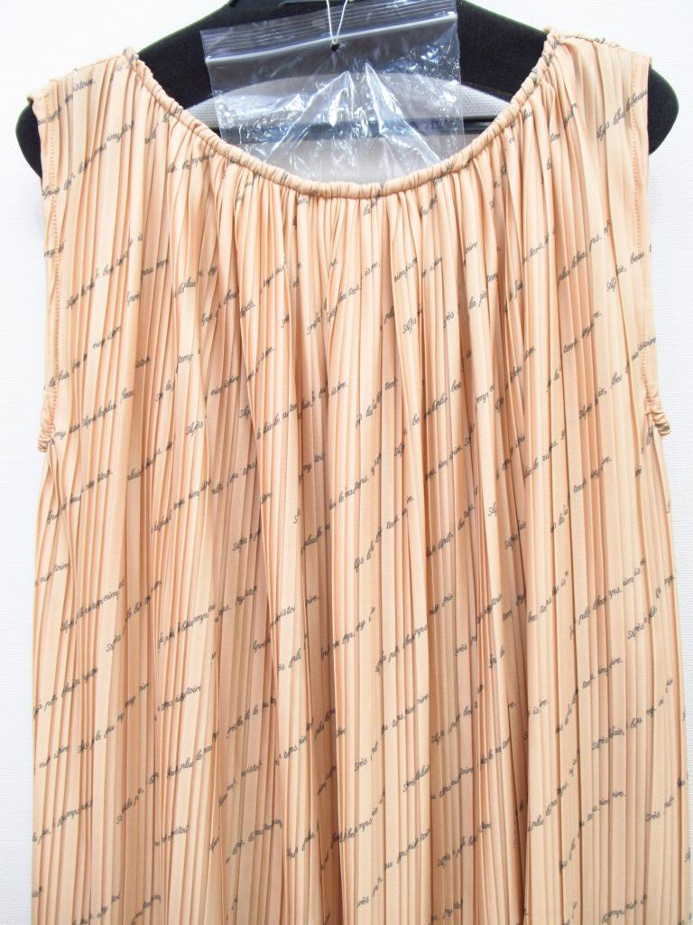 | コメント | 「ランダムプリーツプリントワンピース、バックオープン」 【材質】ポリエステル100 【実寸サイズ】バスト118肩幅35着丈118.5 【デザイン】ベージュ×グレーロゴ 光沢あり インナー付き 定価18,700円(税込) 2022年製 |