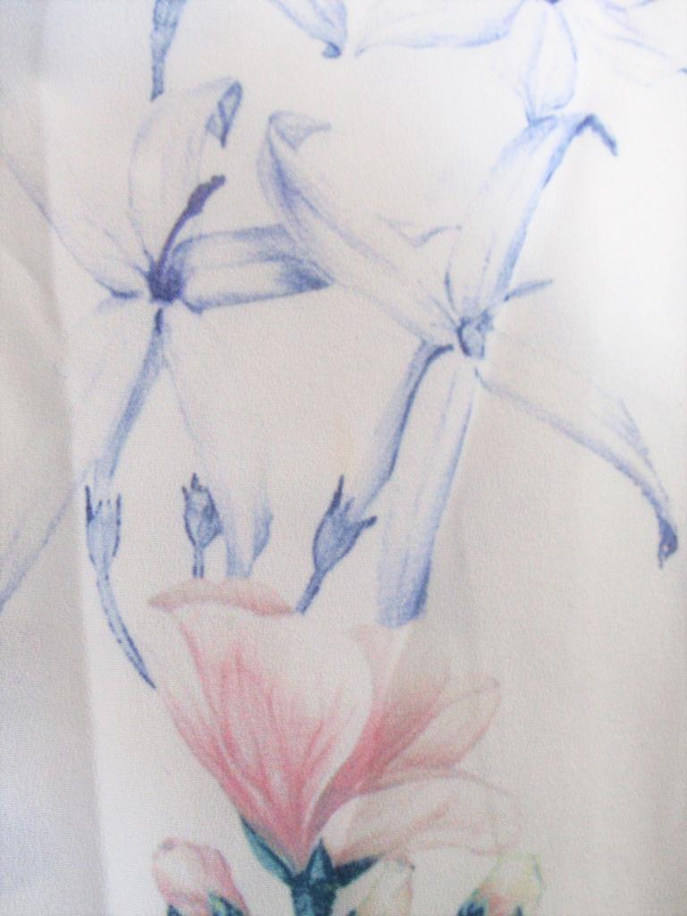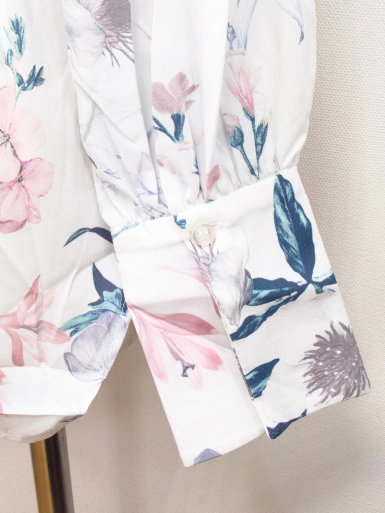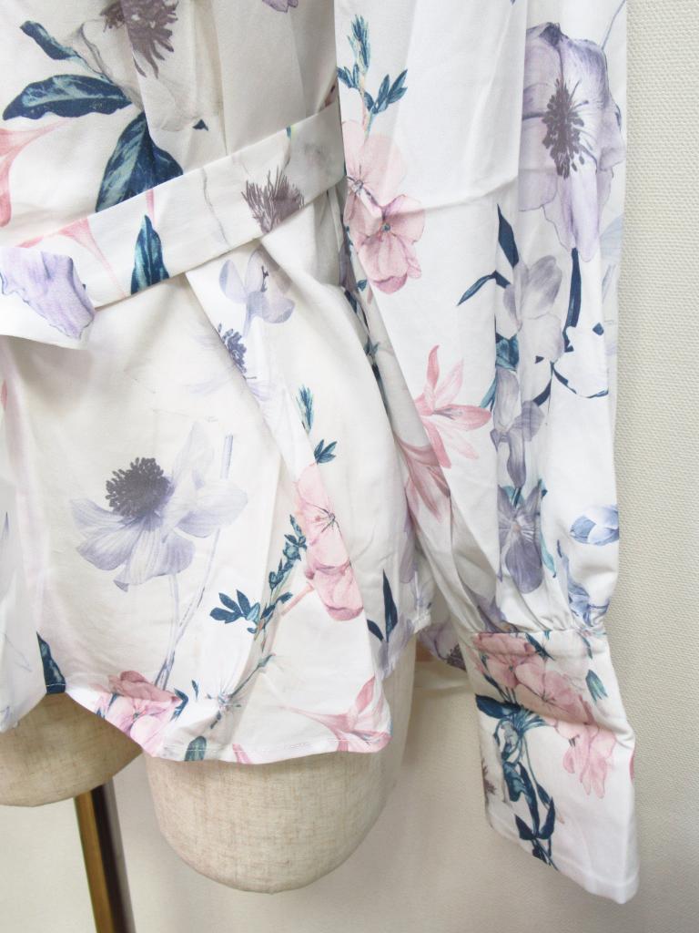 | コメント | 【ゆうパケット可能】 「長袖ブラウス」 【材質】ポリエステル100 【実寸サイズ】バスト96肩幅46.5袖丈56着丈63 【デザイン】ブルーがかったオフホワイトにくすんだピンク、パープル、グリーンの花柄 付属リボンあり 袖口ボタン 【状態】ごく薄い茶色のシミ右前下に6㎜、右袖口に1cm リボンに薄汚れ少々 |