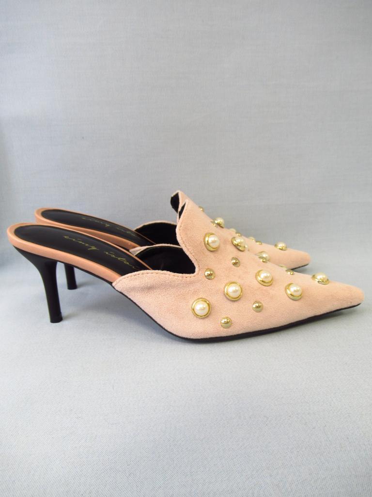 | コメント | 「パールスタッズポインテッドミュール、ピンヒール」 【サイズ表記】23.5 【材質】ポリエステル、合成底 【実寸サイズ】靴外底28ヒールの高さ7.7底最大横幅8.3 【デザイン】ピンクベージュ スウェード ブランドロゴ入りプリント 定価17,578円(税込) |