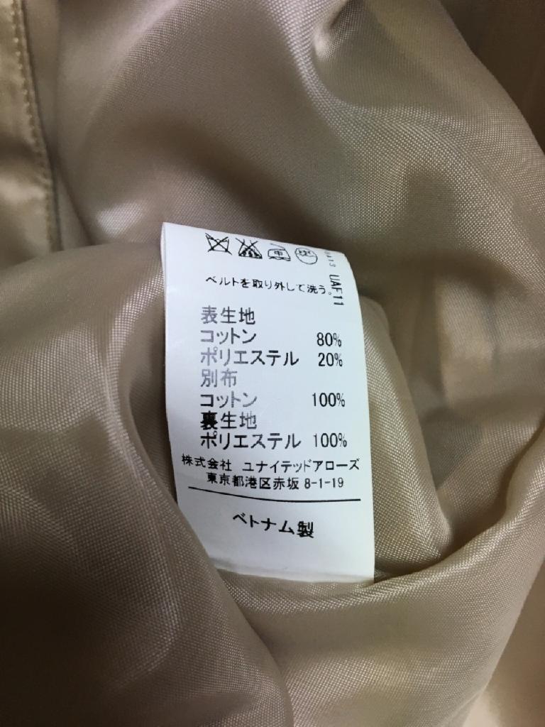 | コメント | ●ご奉仕価格● 【ブランド名】グリーンレーベルリラクシング(ユナイテットアローズ) 【サイズ表記】36 【実寸】総丈/88 肩幅/36 袖丈/58 バスト/80 【材質】綿80% ポリエステル20% 【特徴】ベージュ 袖口ベルト調節可 サイドポケットあり 裏地あり(ポリエステル) 前ボタン全開 ウェストベルト付き うしろスリットボタンで調節 【状態】前左胸元あたりに点シミあります あまりめだちません |