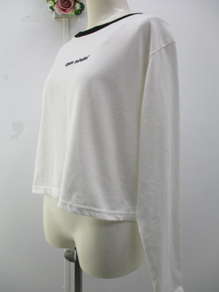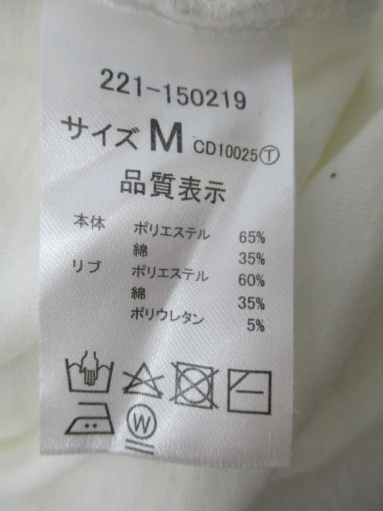 | コメント | 【クリックポスト発送可250円】 ★前刺繍入り♪ 【材質】ポリエステル65%綿35%/リブ地ポリエステル60%綿35%ポリウレタン5% 【記載サイズ】M 【実寸サイズ】B90㎝ 着丈43㎝ 袖丈58㎝ 【生地説明】うす綿混地 【色・柄】白×黒 【デザイン特徴】前、英字刺繍入り 襟周りリブ地 【商品状態】特になし |