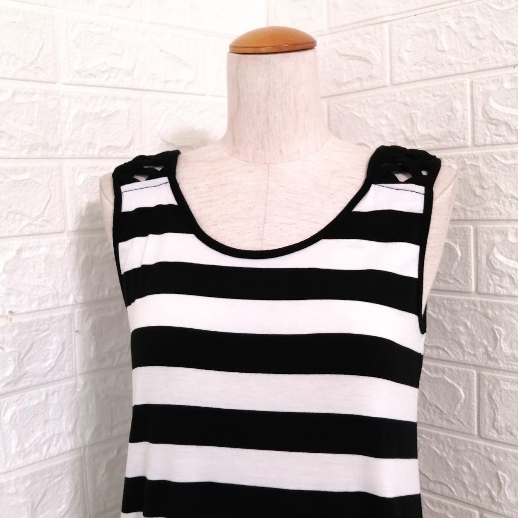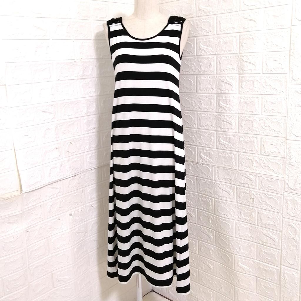 | コメント | 【イング】 『ボーダー ノースリーブ ロング ワンピース』 ◆[サイズ]=M ◆[実寸(平置きcm)]=身幅39.5 総丈116.5(肩から) ◆[色]=ブラック×ホワイト ◆[デザイン]=ノースリーブ ボーダー柄 肩部分クロス編みデザイン(透け感あり) ロング丈 ◆[状態]=全体的に綺麗なお品です ◆[材質]=7枚目画像参照 |