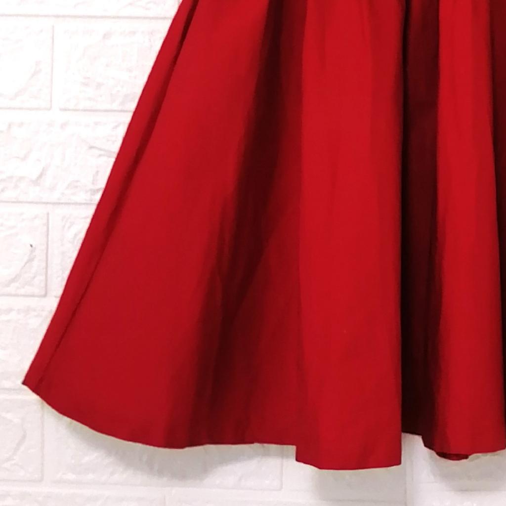 | コメント | 【イング】 『ミニ ギャザー スカート』 ◆[サイズ]=M ◆[実寸(平置きcm)]=W幅29~ スカート丈48 ◆[色]=暗めレッド ◆[デザイン]=ウエスト総ゴム ギャザー入り ミニ丈 裏地あり ◆[状態]=全体的に綺麗なお品です ◆[材質]=5枚目画像参照 |