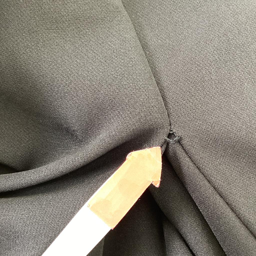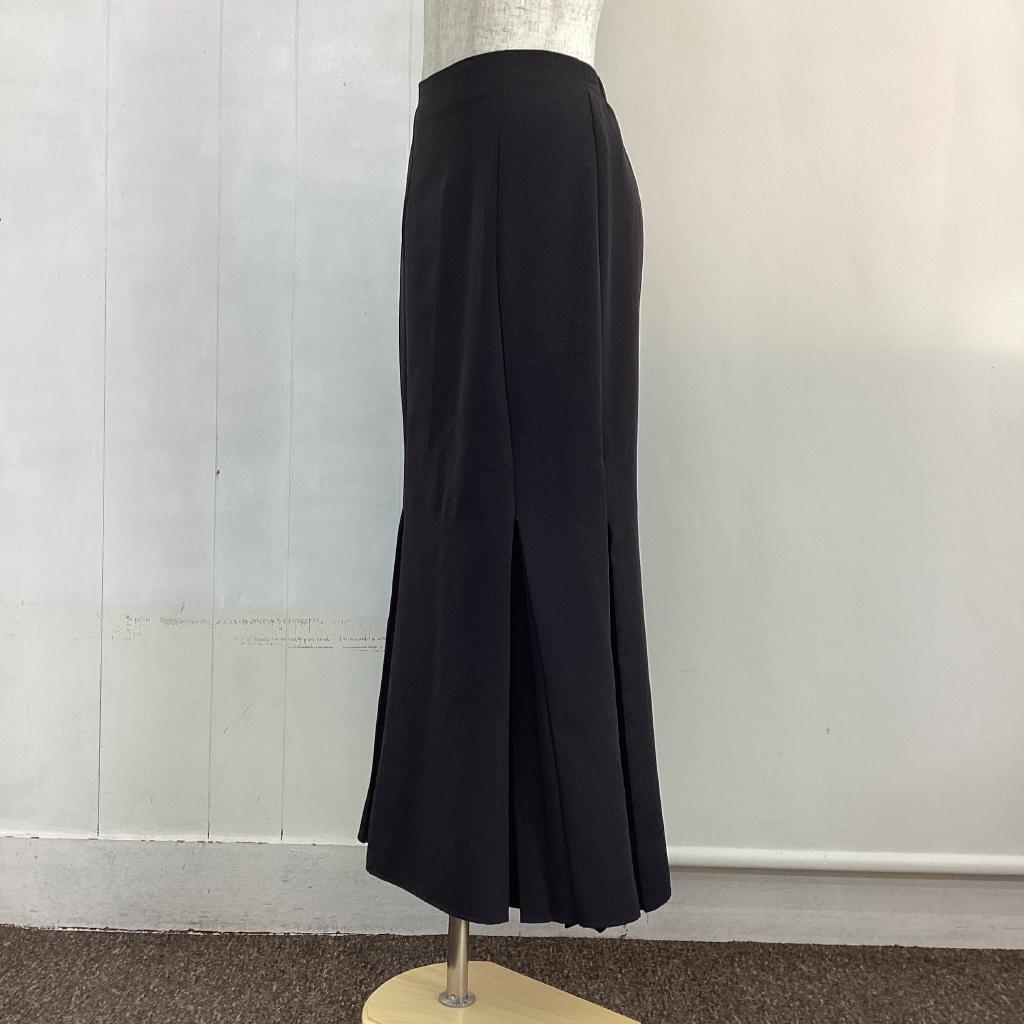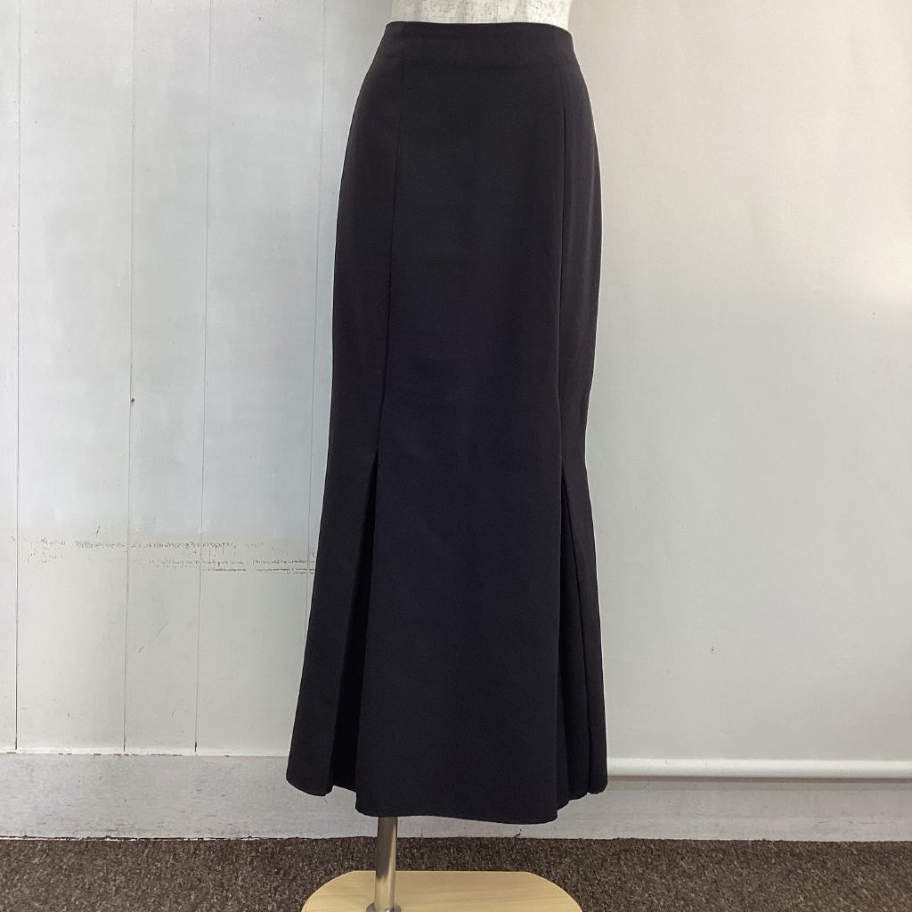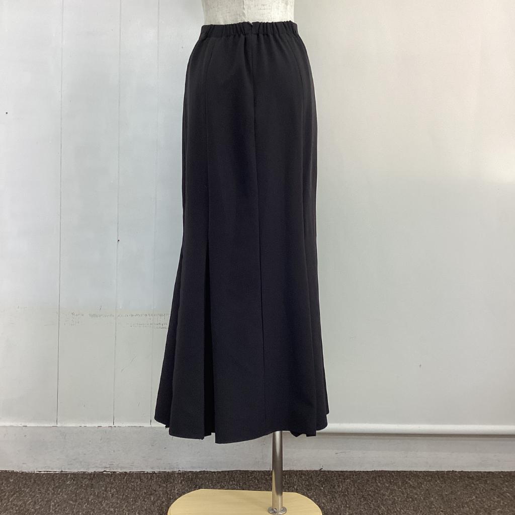| コメント | 【サイズ】F(フリー) 【実寸(㎝)】W55~ H86 丈89 【素材(%)】※タグ参照 【裏地(%)】なし 【色】ブラック系 【デザイン】後ろホックファスナー ウエストゴム ストレッチあり タックあり 【状態】使用感あり(中) 毛羽立ちあり(小) スリット部分ほつれあり |