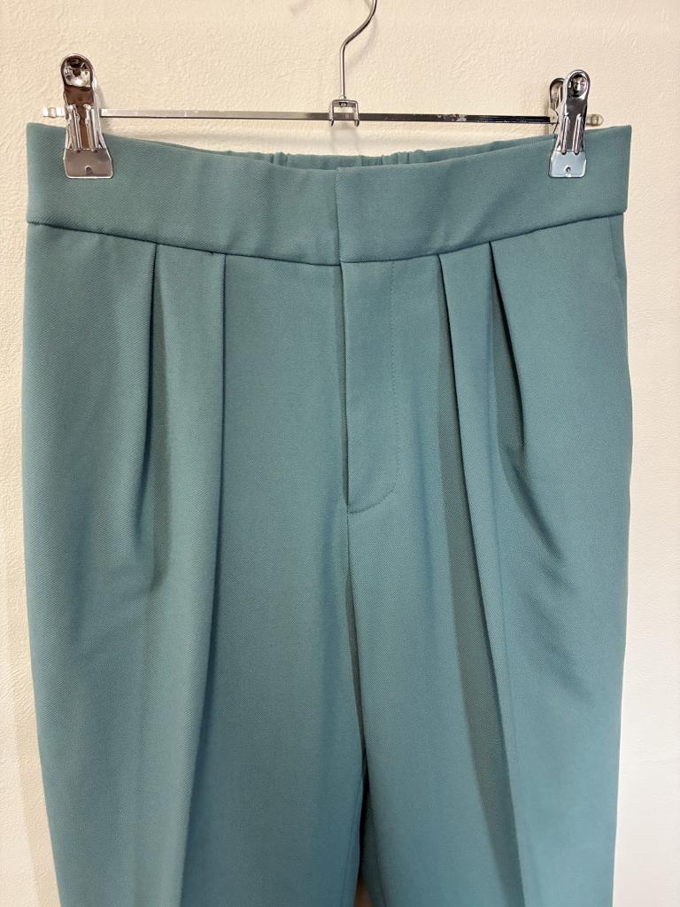 | コメント | 【サイズ】1 【定価】14960円 【実寸】ウエスト62- ヒップ90 股上29 股下65 太もも27 【材質】ポリエステル57% レーヨン33% アクリル6% ポリウレタン4% 【状態】新品 【色・デザイン】グリーン 前ホック×ファスナー 両サイドポケット ウエスト後ろゴム ストレッチあり 【風合い】 ◎ 【生地の厚さ】 普通 【透け感】 なし |