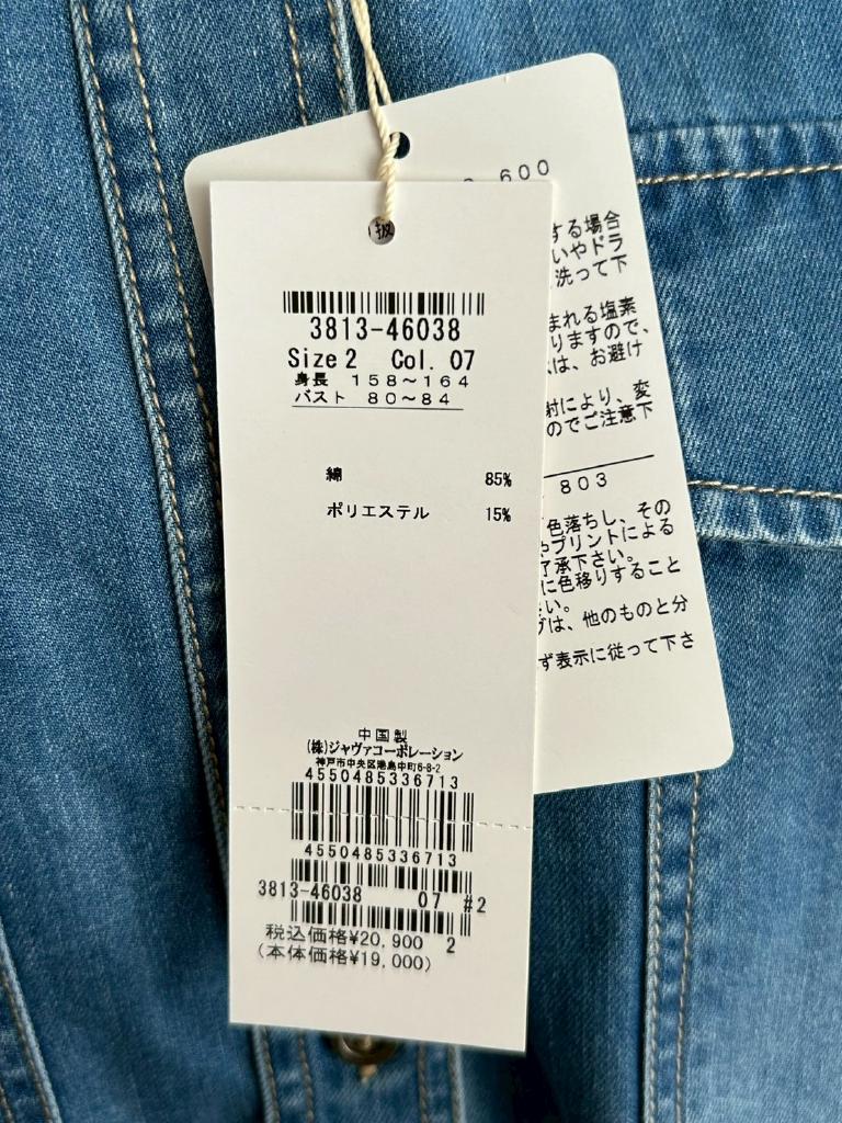 | コメント | 【実寸約cm】B112 着丈61 肩幅52 袖丈48 【サイズ】2 【素材%】綿85 ポリエステル15 【色】ブルー 【アイテム】デニムシャツ 【ポケット】あり 【ボタン】あり 【状態・シミやホツレ等】なし 【着用感】新品未使用 【備考】 |