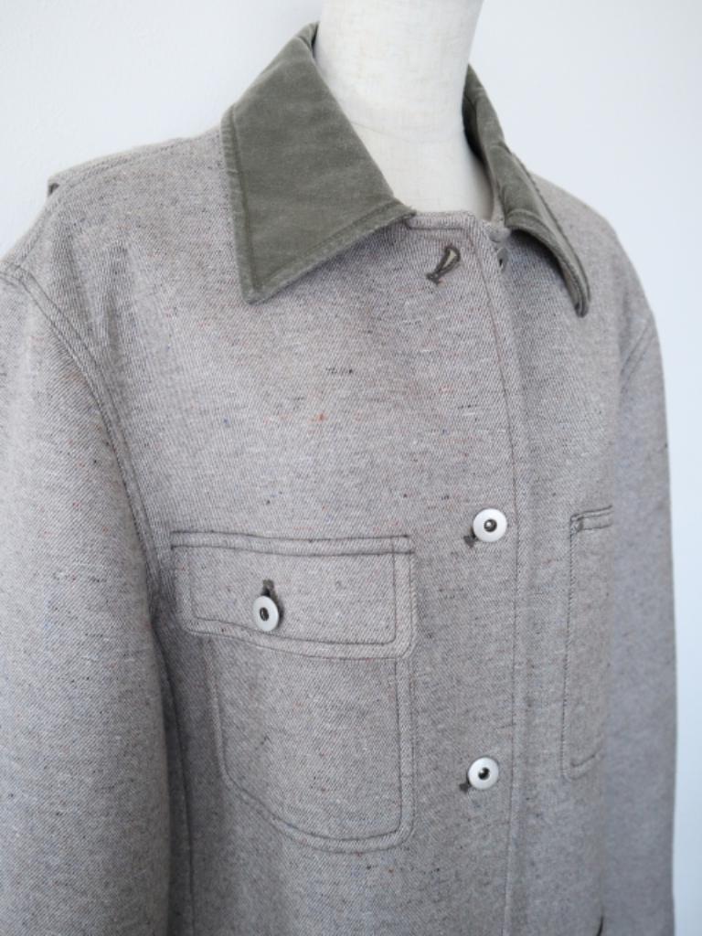 【記載サイズ】36 【実寸】バスト118 着丈77 ゆき丈83 【色】グレー くすみ緑系カーキ シルバー 【詳細】ストレッチ素材 【状態】衿少々擦れあり ご不明な点や気になる点などございましたら、お気軽にご質問ください♪ |