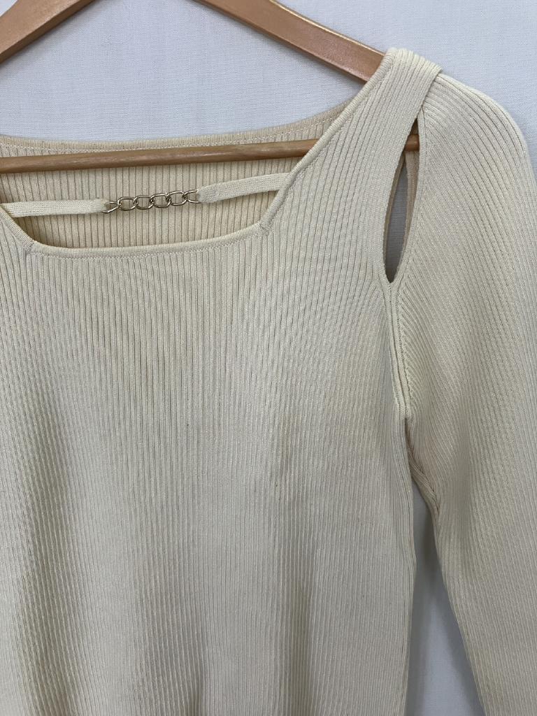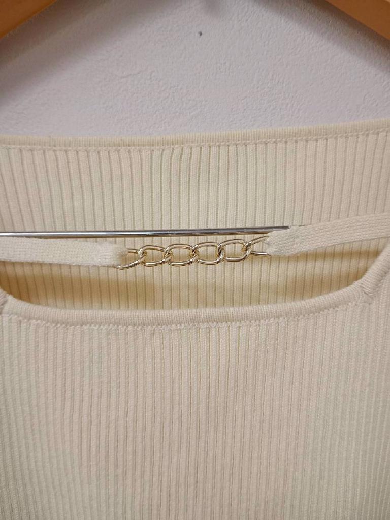 | コメント | チェーン付きオープンニット 【メーカーサイズ】M 【実寸(cm)】バスト72~ 着丈40 ゆき丈72 【素材】レーヨン 綿 ナイロン 【デザイン・色】薄黄 リブニット地 肩あき ゴールドチェーン付 【状態】少々毛羽立ち・毛玉 #おすすめ #7223158 ☆ |