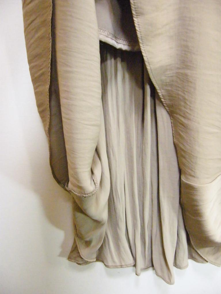 | コメント | 【色柄・デザイン】ホワイト系色 オフホワイトとベージュ ウエストゴム入り 裏地あり 後ろループボタンどめ 【商品状態】保管シワ少し 毛羽立ち少々 着用感少し 【実寸サイズ(約センチ)】バスト74 総丈123 肩幅35 |