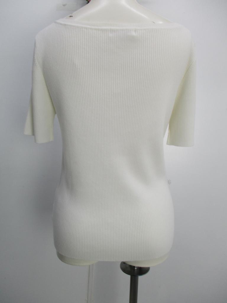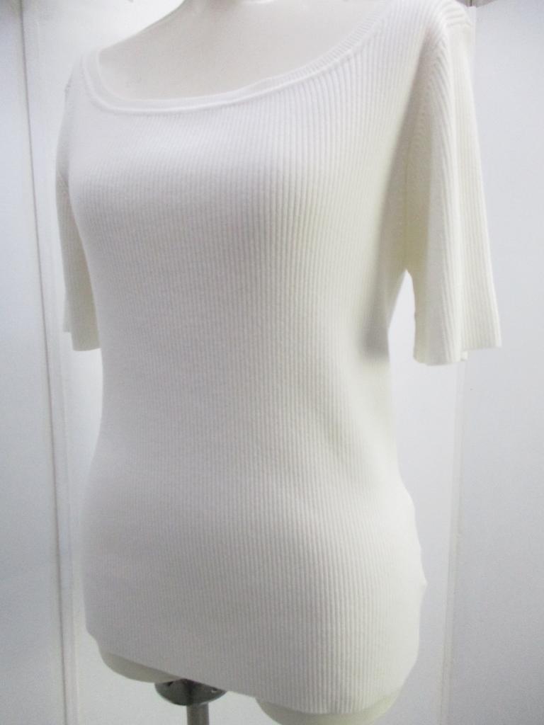 | コメント | 【クリックポスト発送可250円】 ★リブニット♪ 【材質】アクリル57% 綿26% ナイロン16% ポリウレタン1% 【実寸サイズ】B73 着丈51.5 肩幅34 袖丈22 【生地説明】リブニット 【色・柄】白 【商品状態】目立った汚れなし |