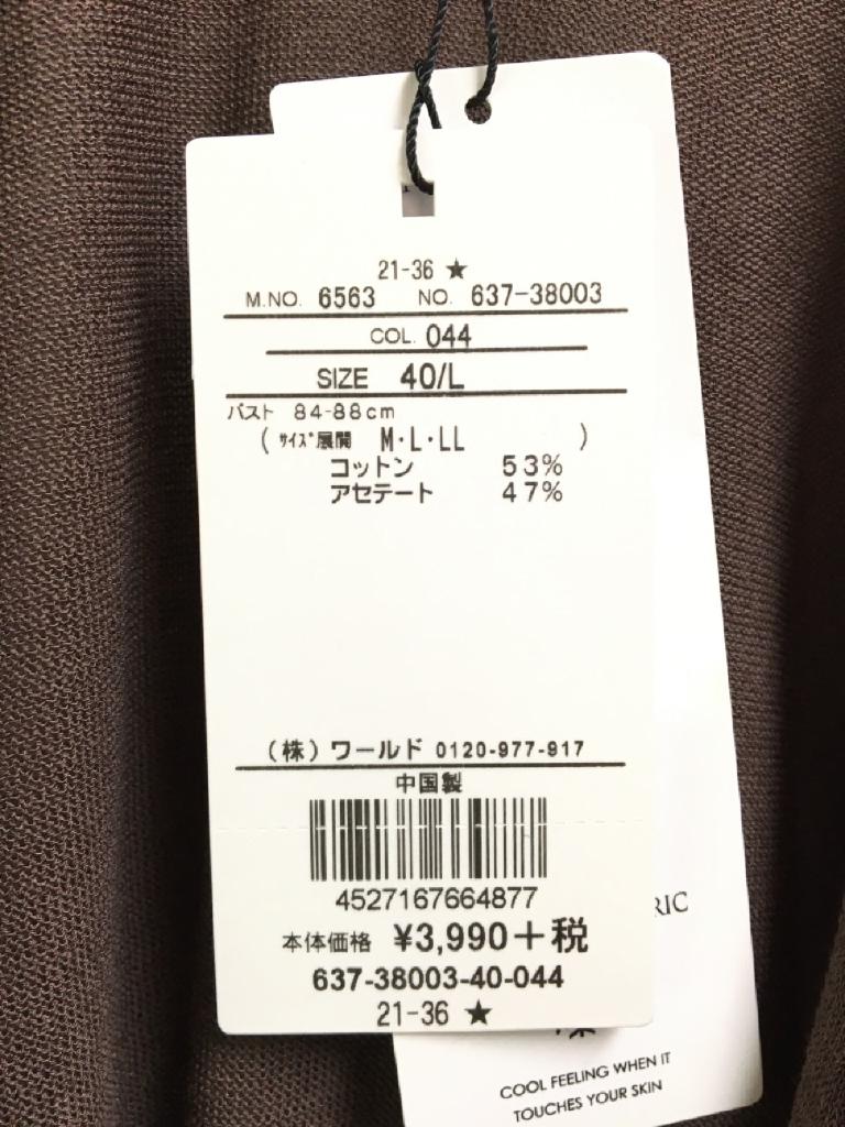 | コメント | ●ご奉仕価格● 価格3990円+税のお品 【ブランド名】オペークドットクリップ 【サイズ表記】40 【実寸】総丈/81 裄丈/68 バスト/96 両横スリット/24 【材質】綿53%、アセテート47% 【特徴】ブラウン ポケットなし 裏地なし |