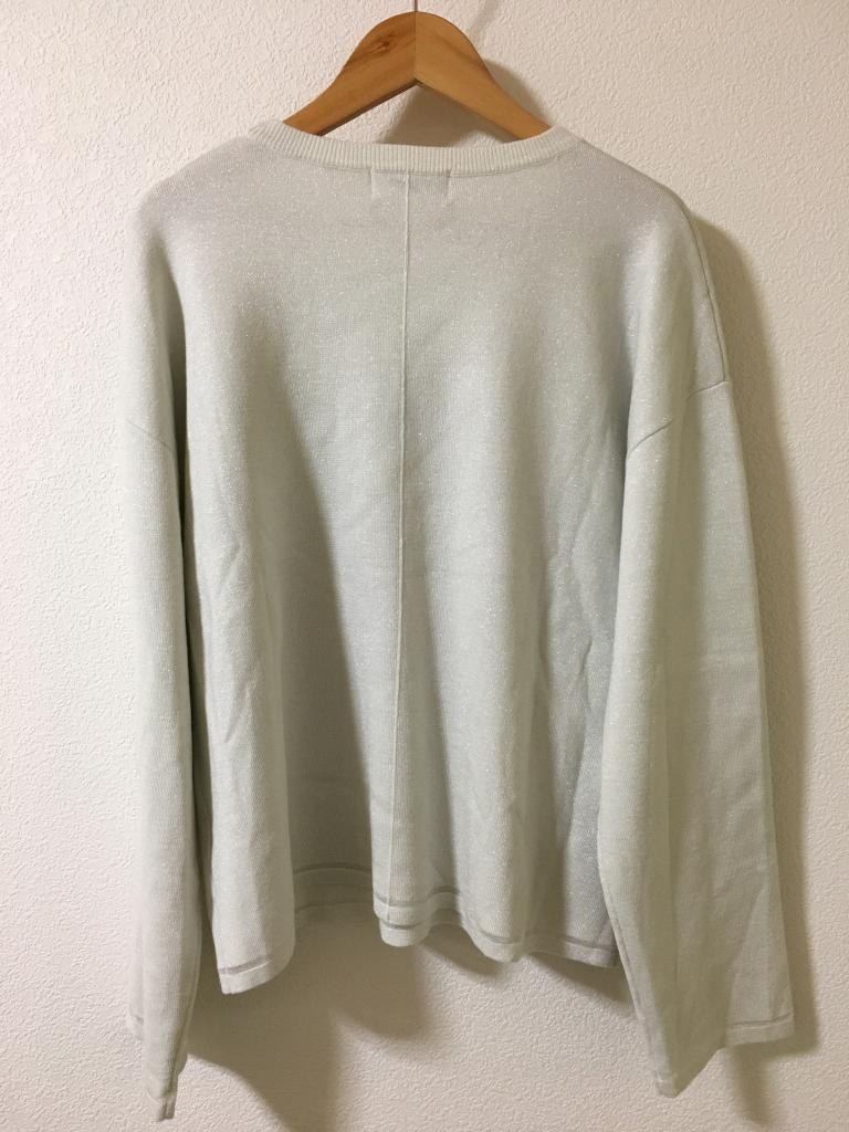 | コメント | 表示サイズ:42/LL ラメ入りオフ白 全体的にキレイです 着丈51 身幅52 肩幅52 袖丈48 |