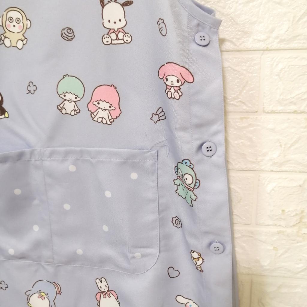 | コメント | 【サンリオ】 『サンリオキャラクターズ エプロン』 ◆[サイズ]=M-L(バスト79-94/身長154-162) ◆[実寸(cm)]=身幅52 着丈76 ◆[色]=パープルがかった薄ブルー×オフホワイト他 ◆[デザイン]=左サイド開閉ボタン 胸元ロゴ フロントサンリオキャラクターズ総柄 ◆[状態]=未使用品です ◆[材質]=6枚目画像参照 |