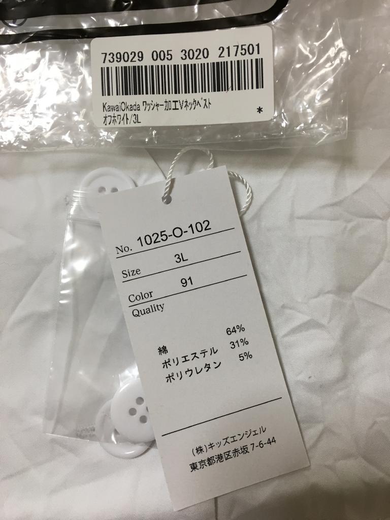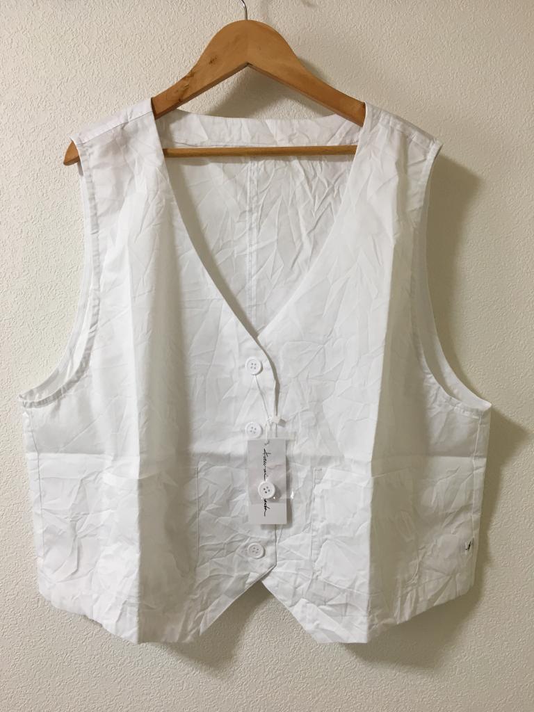 | コメント | 表示サイズ:3L ワッシャー加工Vネックベスト オフホワイト 肩~裾50 身幅57 肩幅38 |