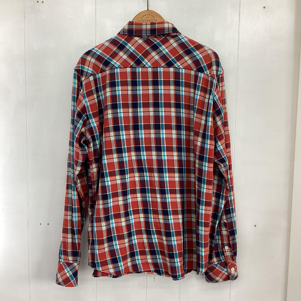 | コメント | 【サイズ】【メンズ】Lサイズ 【実寸(㎝)】身幅49.5 袖丈60 肩幅42 丈66 【素材(%)】※タグ参照 【裏地(%)】なし 【色】レッド系 【デザイン】前ボタン 袖口ボタン 左胸ポケット 【状態】使用感あり(中) |