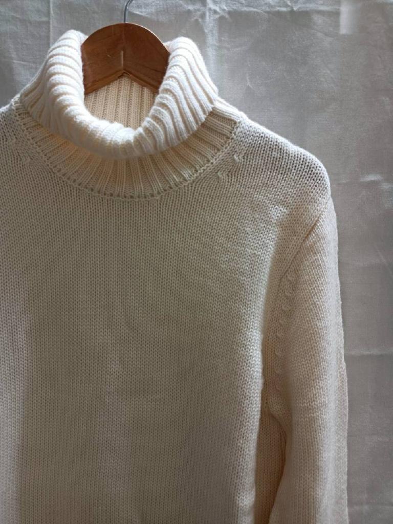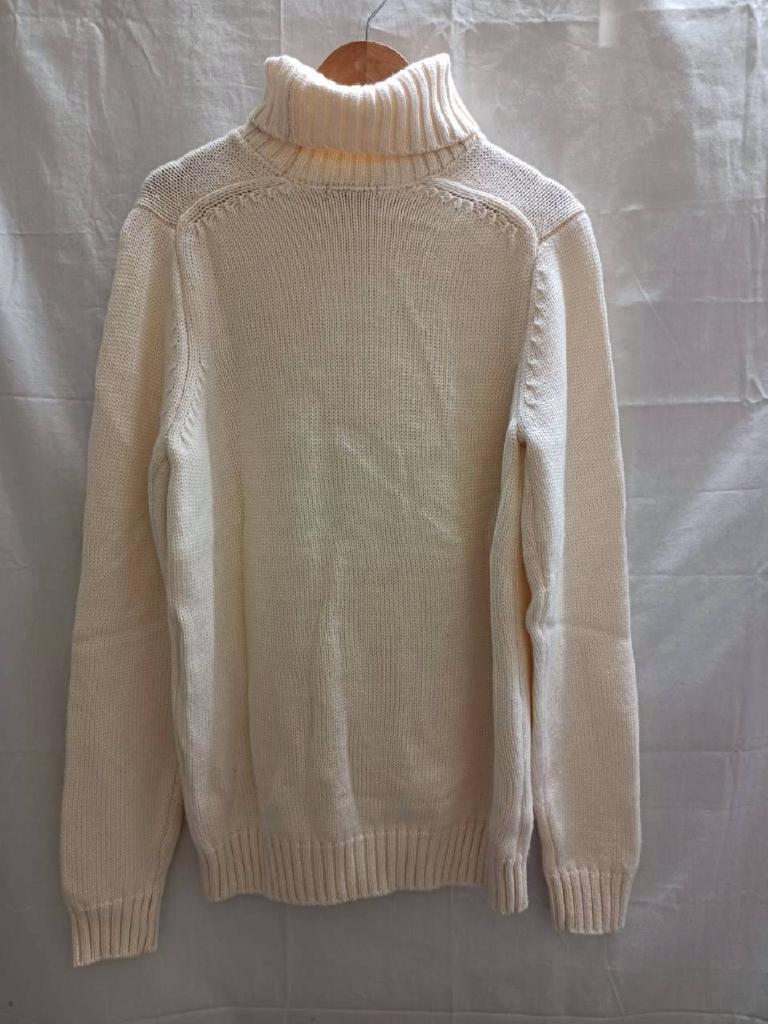 | コメント | ヒルトン 【メーカーサイズ】S 【実寸(cm)】胸囲90 着丈60 肩幅36 袖丈63 【素材】毛 【デザイン・色】白 ニット地 タートルネック 【状態】少々毛羽立ち・毛玉 #おすすめ #7223444 ☆ |