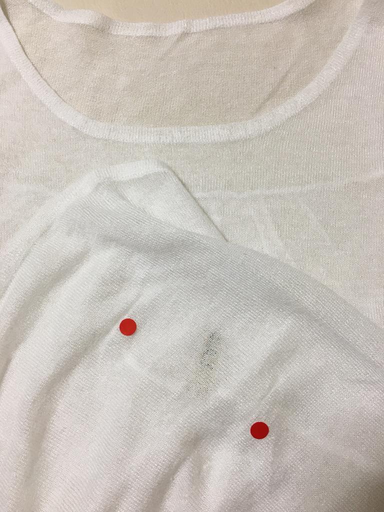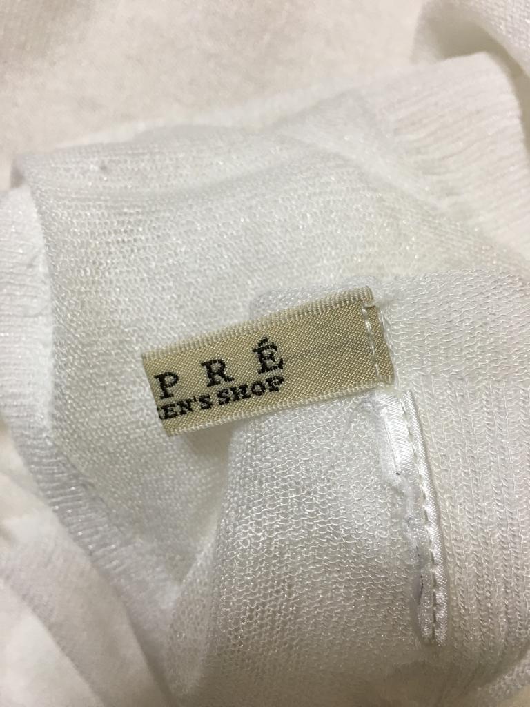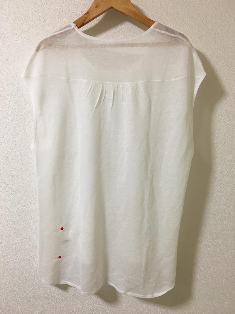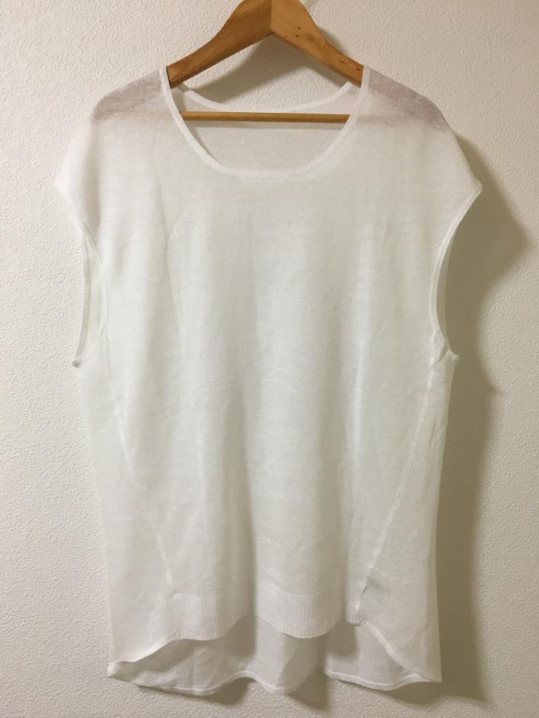 | コメント | 表示サイズ&材質タグがカットされています ラメ入りホワイト 後下部に1~3cmのヒッカケ伝線4カ所 着丈)前55後60 身幅48 ゆき丈27 |