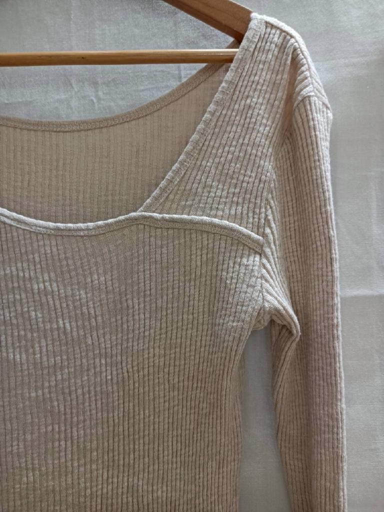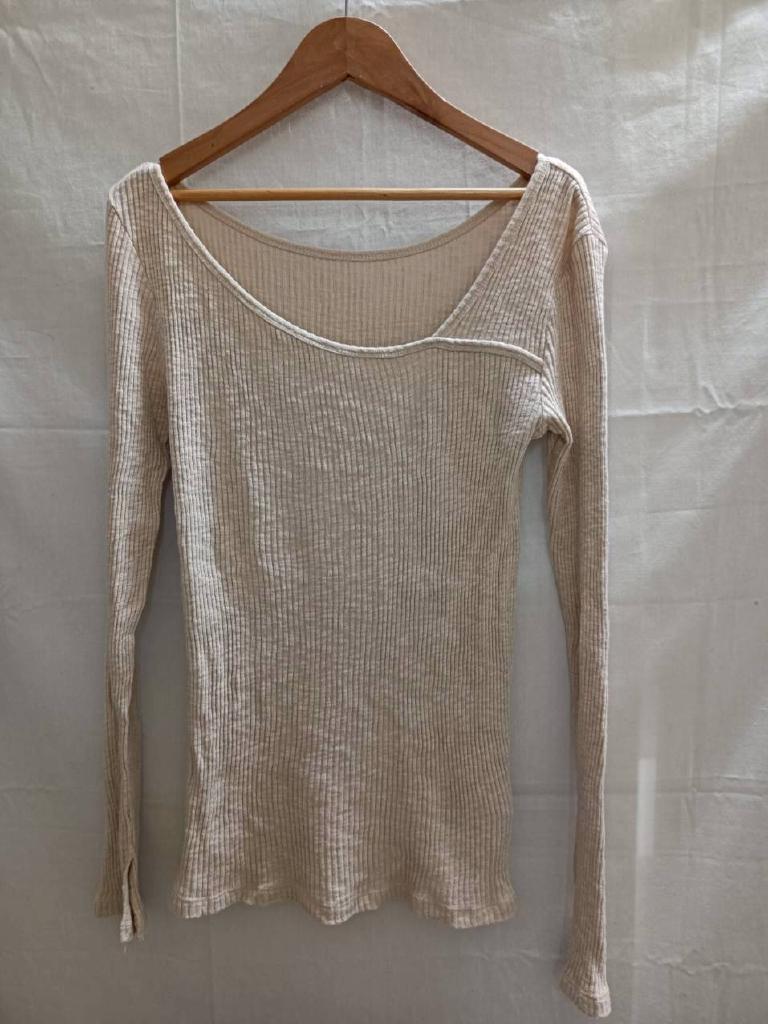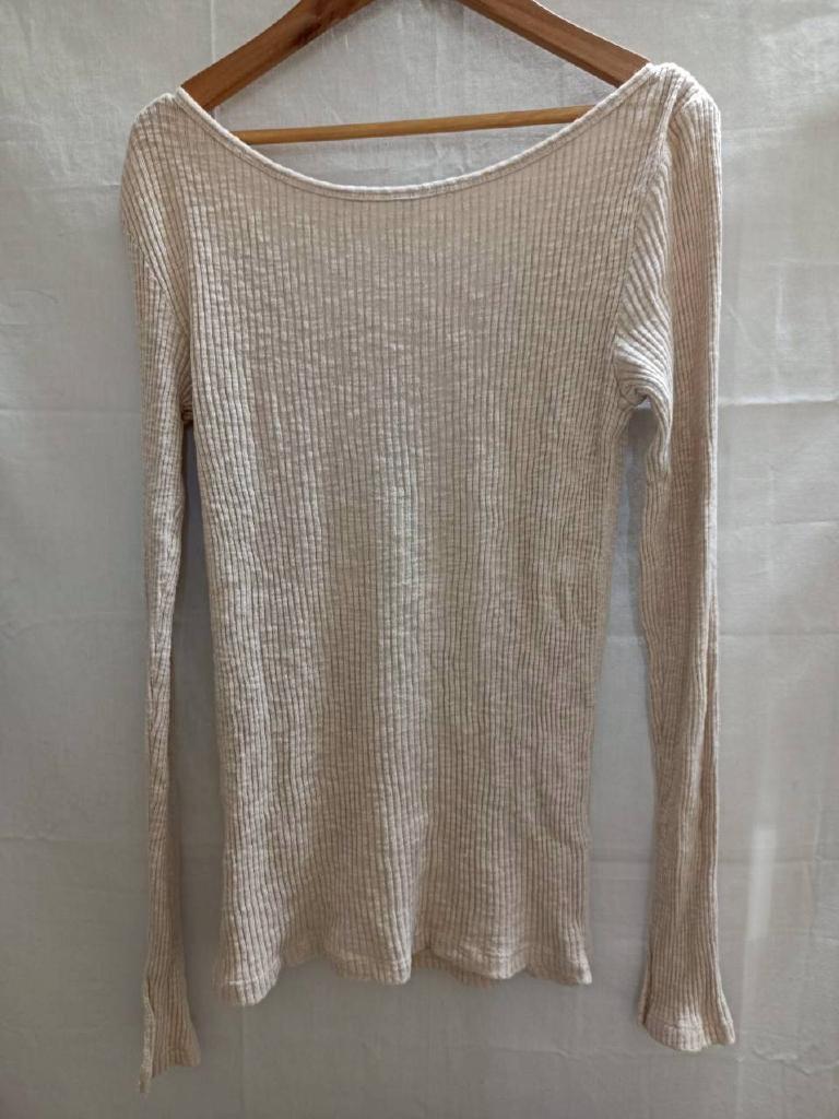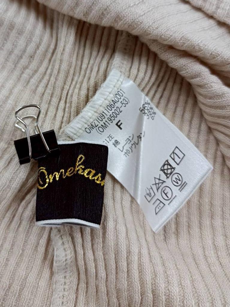 | コメント | オメカシ 【メーカーサイズ】F 【実寸(cm)】バスト73 着丈51 肩幅39 袖丈60 【素材】綿 レーヨン ポリウレタン 【デザイン・色】ベージュ ニット地 袖口スリット8㎝ 【状態】少々毛羽立ち #おすすめ #7223641 |